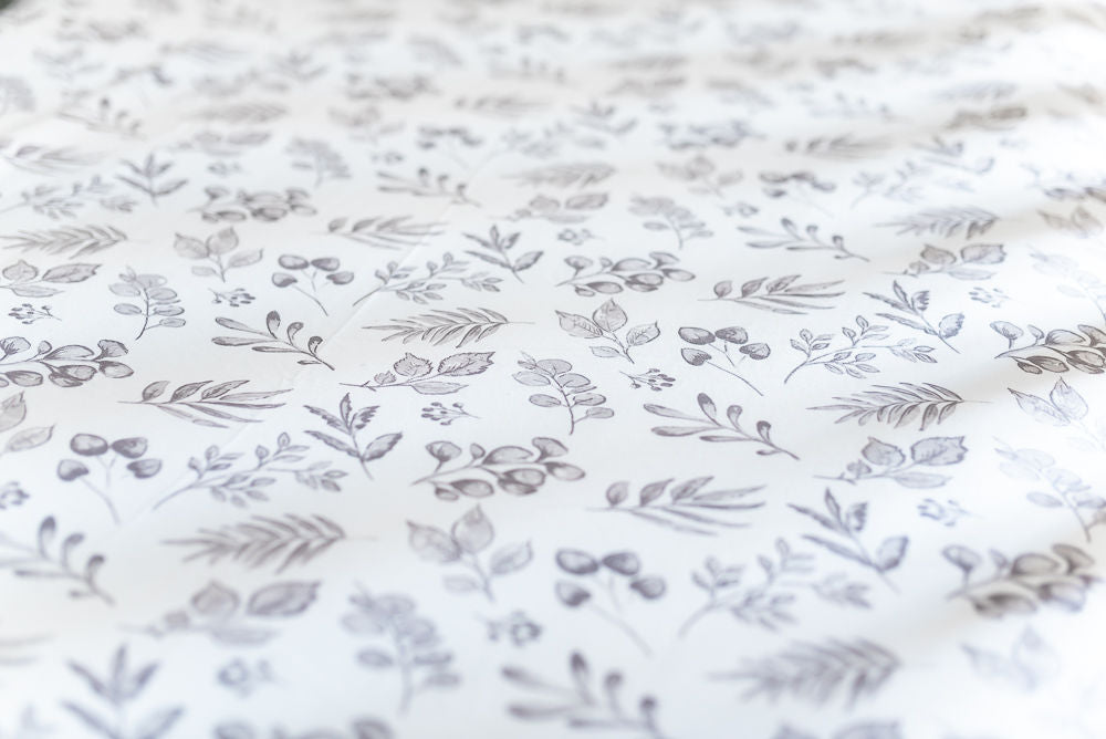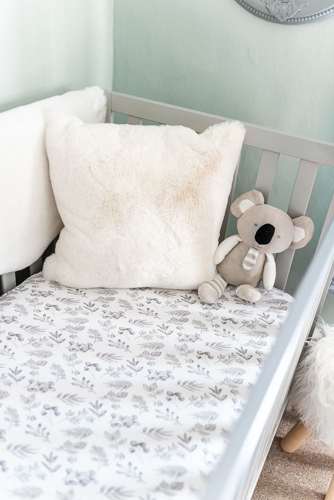 The Gilded Bird Cot/Cotbed Organic Cotton Fitted Sheet - Lovely Leaves Grey