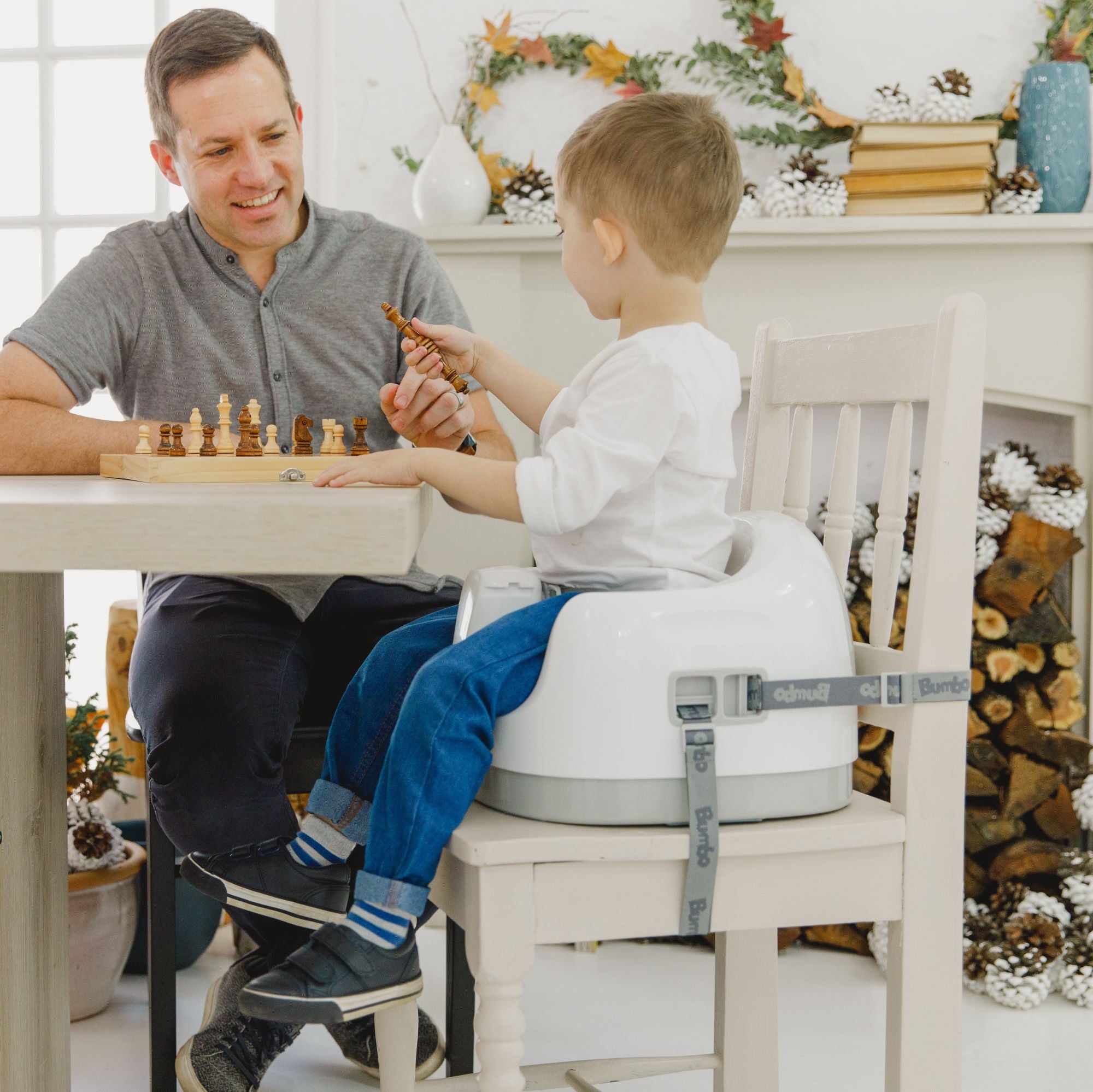 The Bumbo® multi seat can be used in three stages, adapting it to the growing needs of your child. You can use it as a floor seat, strap it to an adult chair for feeding time in place of using a highchair, and you can use it as a booster by removing the pad.