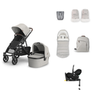 Uppababy Vista V3 Pram, Accessory and Travel System Bundle with Maxi Cosi Pebble 360 Pro V2 and FamilyFix 360 Pro Base - Savannah