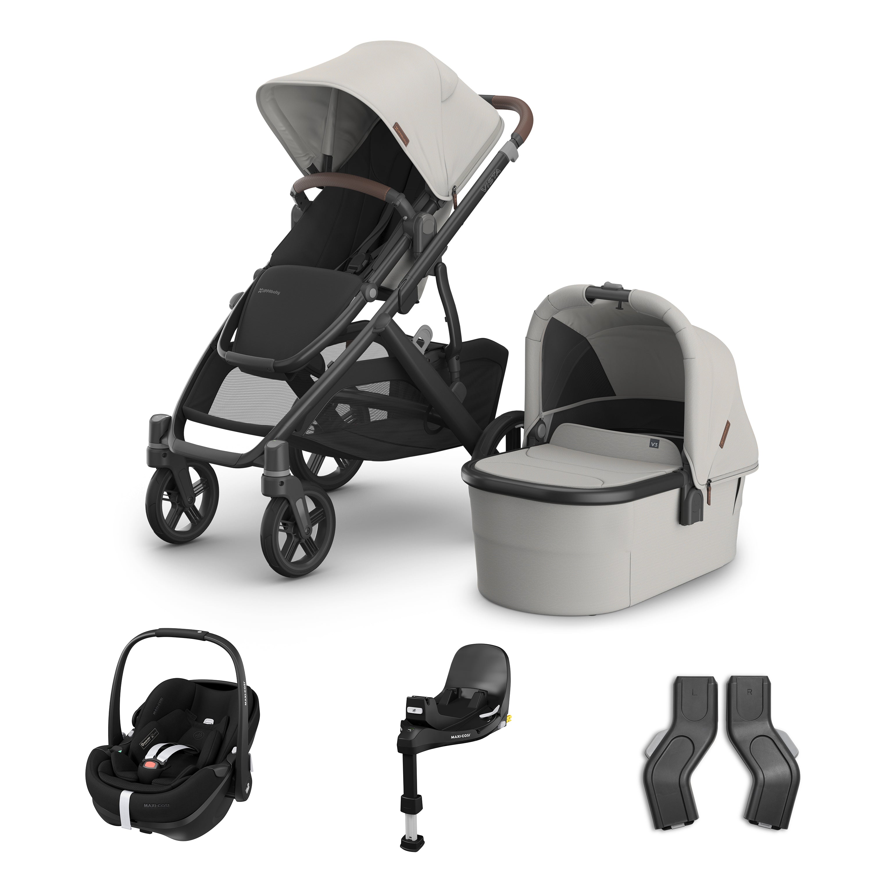 Uppababy Vista V3 Travel System Bundle with Maxi Cosi Pebble 360 Pro V2 and FamilyFix 360 Pro Base - Savannah