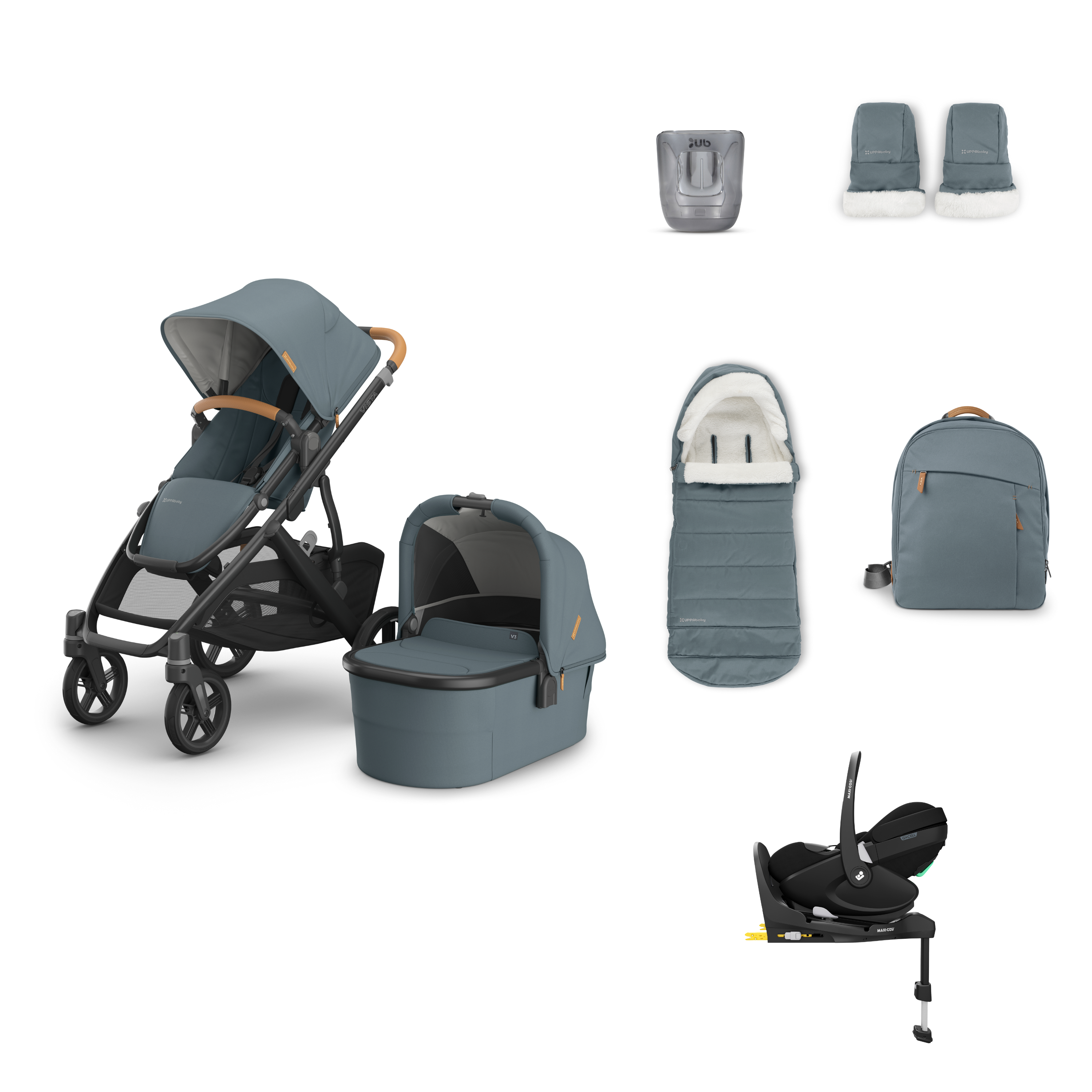 Uppababy Vista V3 Pram, Accessory and Travel System Bundle with Cybex Cloud T Plus and Base T - Greyson