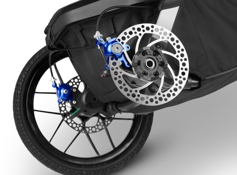 Water repellant, high-performance fabrics, a strong lightweight aluminium chassis and large diameter, non-puncture tyres, make the RIDGE the ideal stroller for those who love the outdoors. The patented two-stage suspension and padded harness with lumbar support ensure a comfortable ride for your child at all times. Providing greater control, the hand-operated disc brakes control your speed on downhill descents and the adjustable front wheel tracking system maintains the front wheel alignment. Plus the adjustable handlebar gives a wide range of height options.