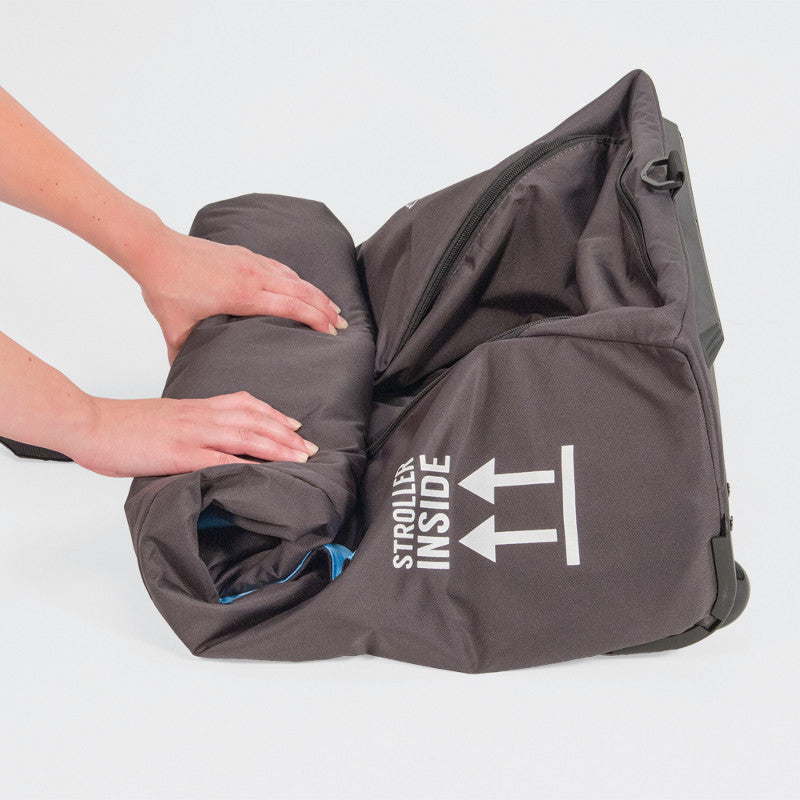 Durable, luggage-grade polyester travel bag accessory specifically designed to protect your VISTA/CRUZ pushchair during travel. This convertible bag allows you to roll with pushchair wheels exposed or carry like a duffel with wheels off and packed inside.