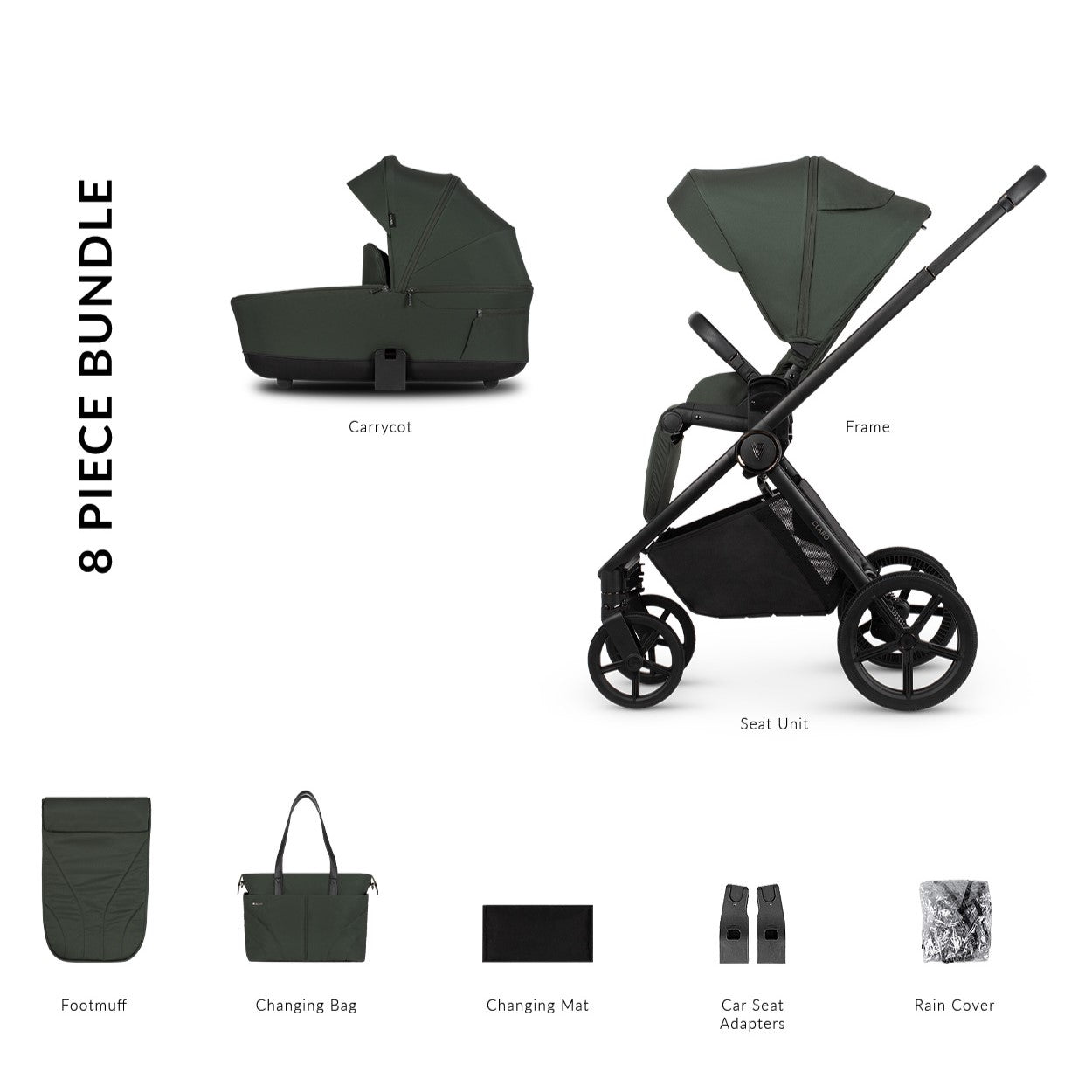 Venicci Claro 2-in-1 Pram and Accessory Bundle - Forest