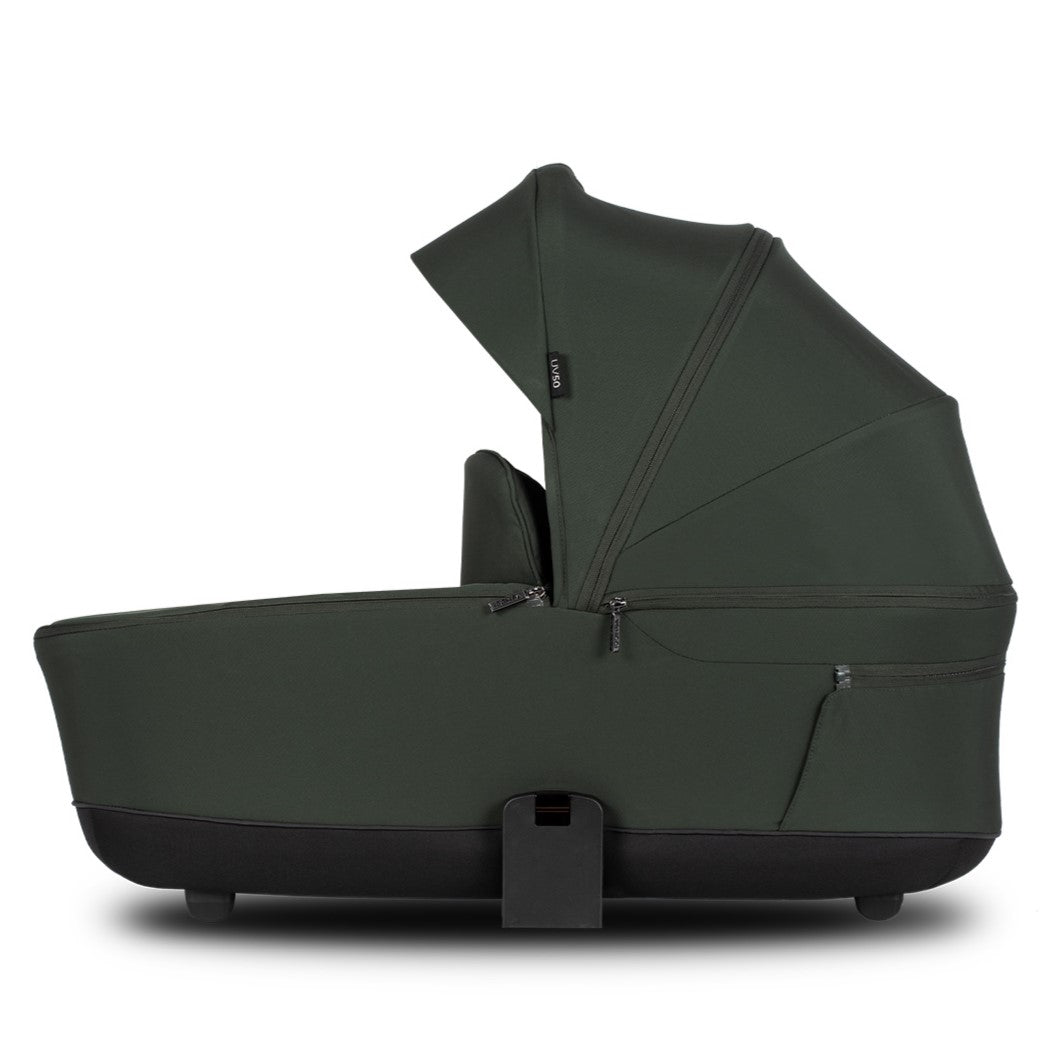 The Claro Carrycot is crafted from an EPP base and water-repellent UV 50+ fabrics, offering exceptional lightness and durability. Its panoramic mesh ventilation in the base and large sun canopy ensure unrestricted airflow and better contact with your little one, especially on warmer days. The carrycot also features an integrated carry handle and memory buttons for easy detachment from the Claro frame.