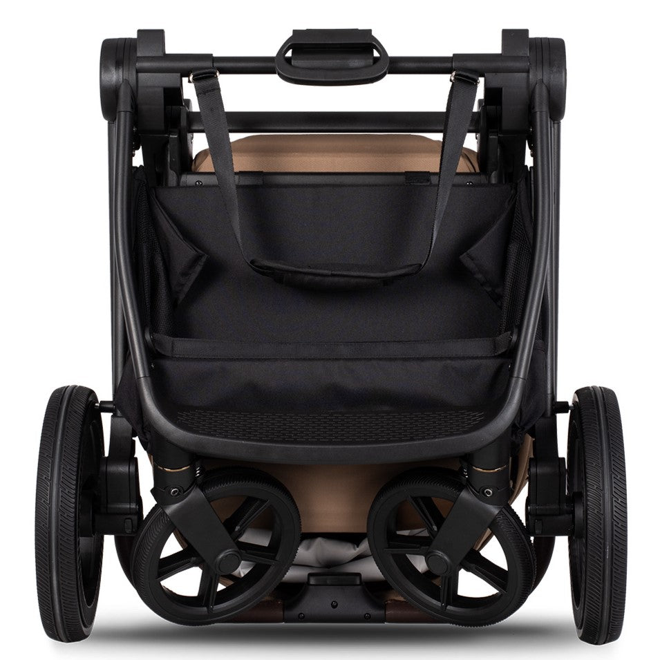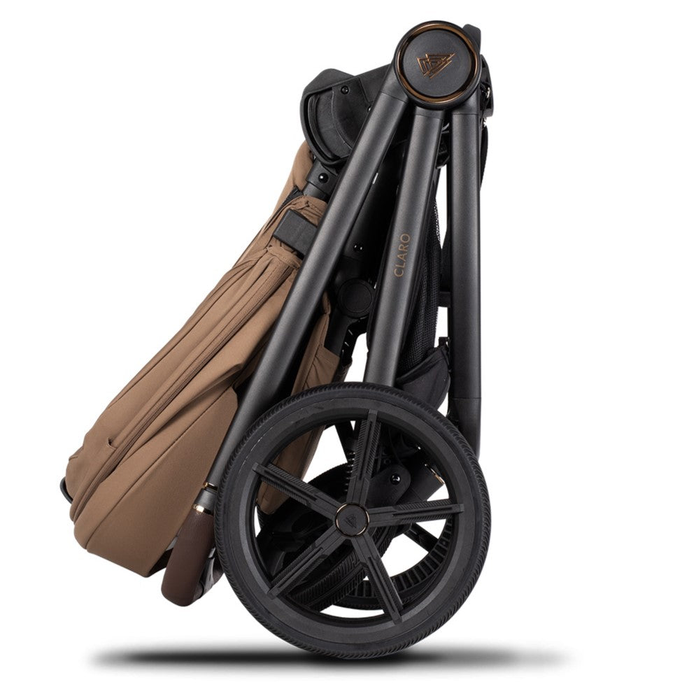 Compared to other Venicci prams, the Claro frame is more lightweight and features smaller wheels, making your daily walks even more pleasant. The four agile gel tires with all-round shock absorbers effectively suppress surface defects, providing a smooth and undisturbed ride for your baby. The frame folds with one hand to a compact size, even with the seat unit attached. A special built-in carry strap allows for easy transportation of the folded Claro stroller on your shoulder.