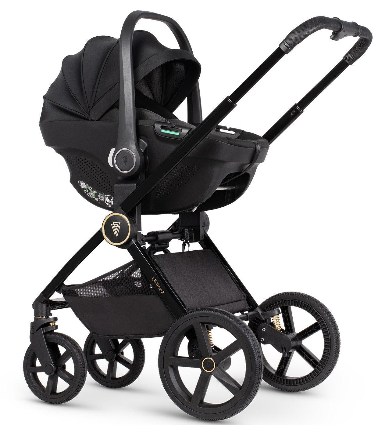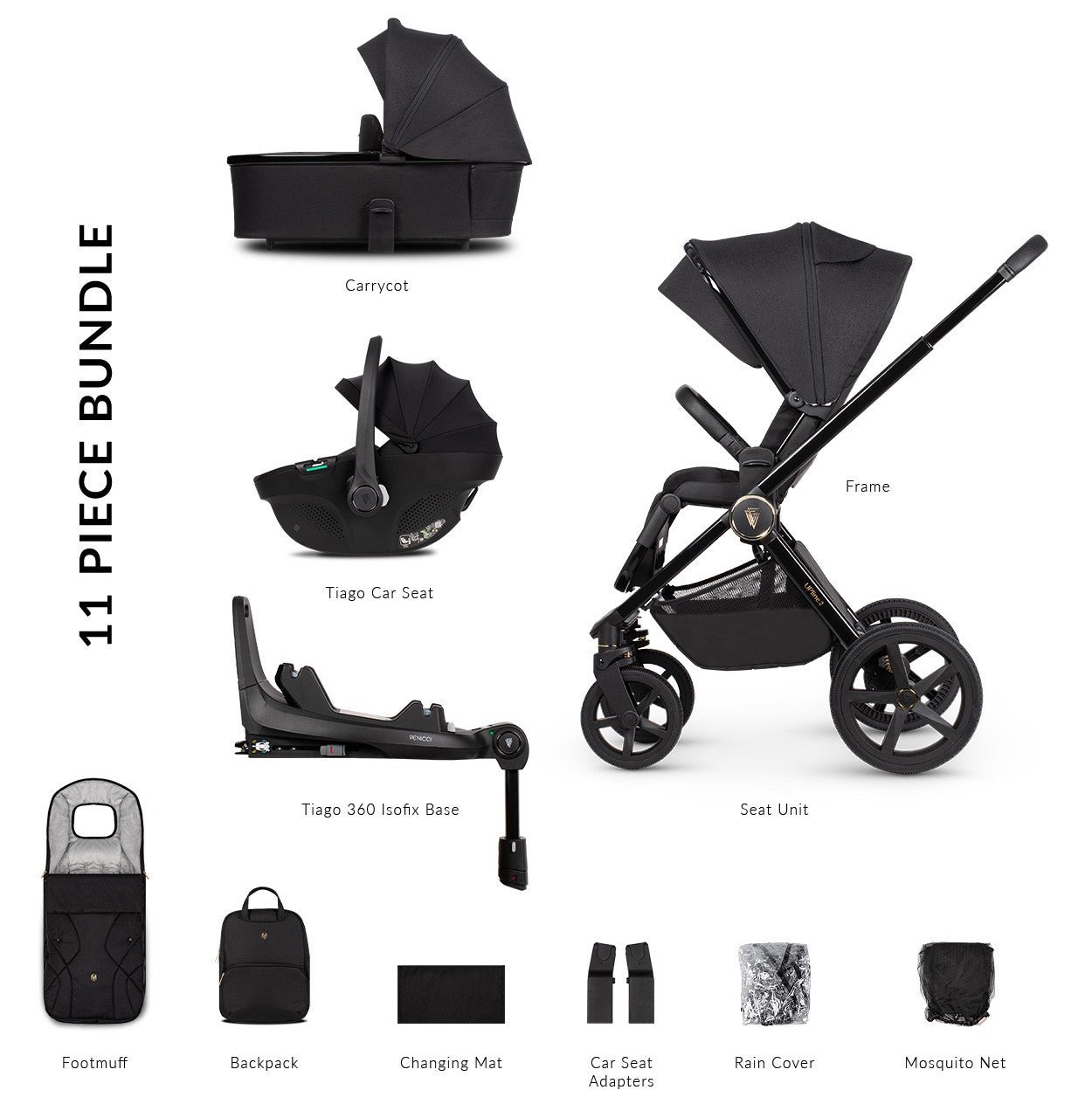 Venicci Upline 2 Complete Pram, Accessory and Travel System Bundle - All Black
