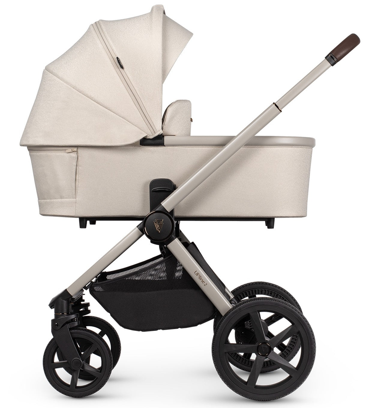 New fabrics and details: After many years of using familiar fabric structures, we’ve chosen to introduce new options. However, their water-repellent properties and UV 50+ protection (which prevents the pram from heating up and keeps the fabric intact) remain unchanged. The new Upline 2 is a breath of fresh air – with new details in the signature, refined Venicci style.