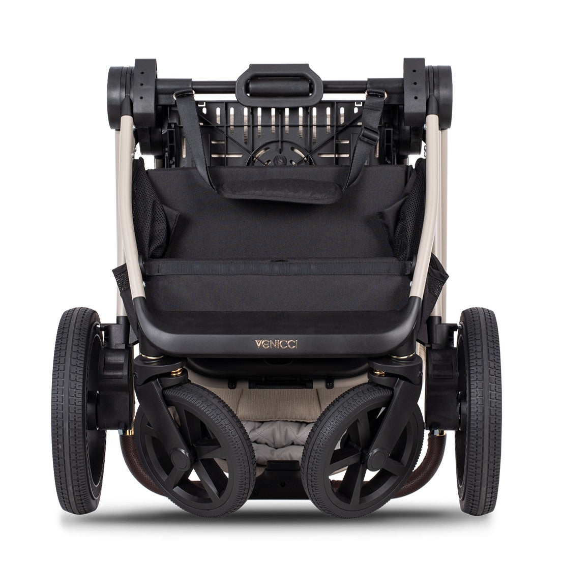 Built-in height adjusters for raising the carrycot and seat unit - 3 adjustable height levels: Travelling with Venicci just got even more comfortable. From now on, the height adjusters are built-in. Thanks to this, both the carrycot and the seat can now be easily adjusted to a higher position. Adjust the height to suit the person pushing the pram. Simply select your preferred level with a quick motion – and off you go.