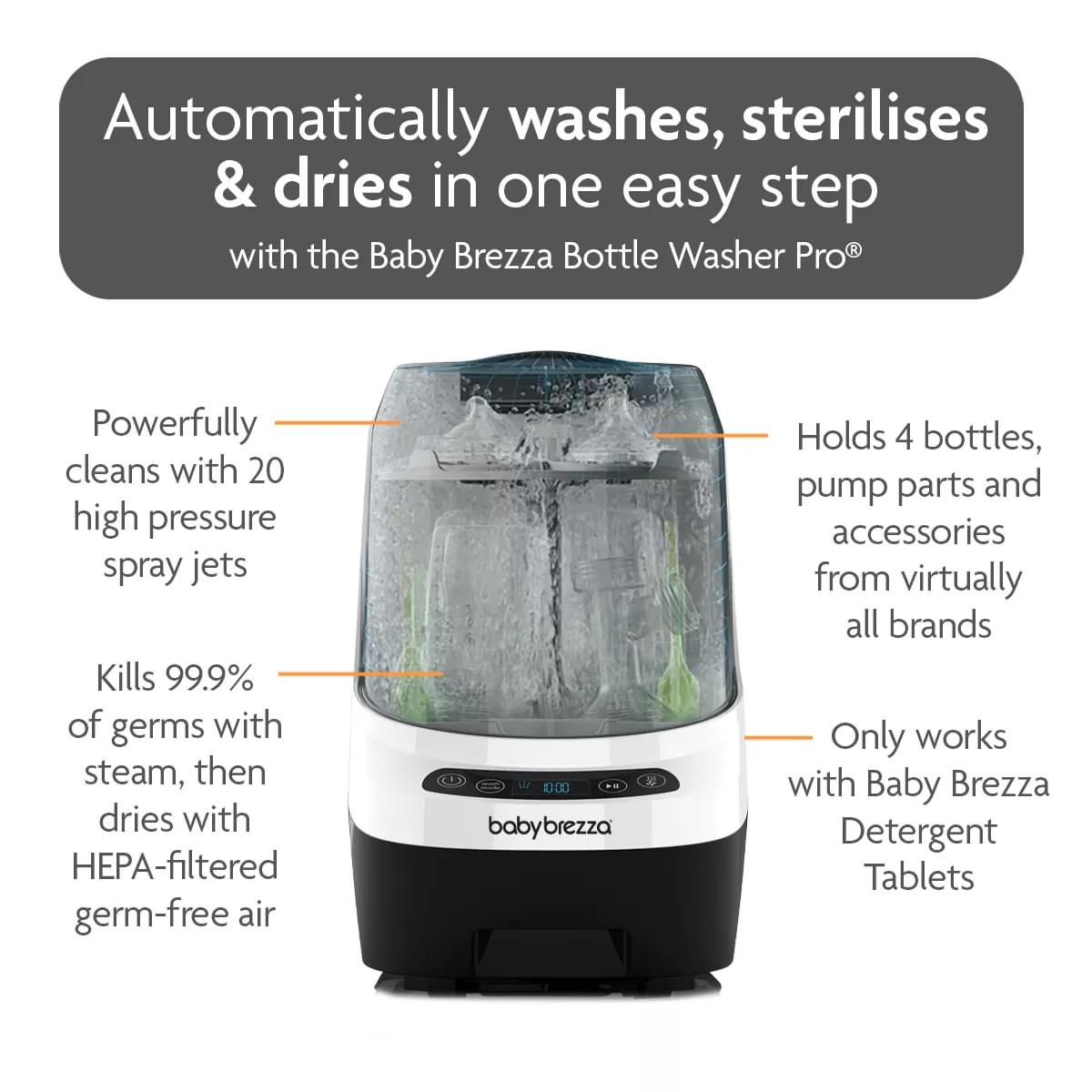 - Works only with baby-safe Baby Brezza Detergent Tablets (free 60 pack included)