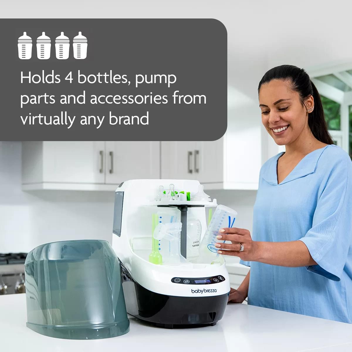 The Bottle Washer Pro can hold 4 bottles, breast pump parts, and accessories from any brand, and requires no external plumbing, making it easy and convenient to use. Say goodbye to the traditional bottle brush and hello to clean bottles and accessories at the push of a button!