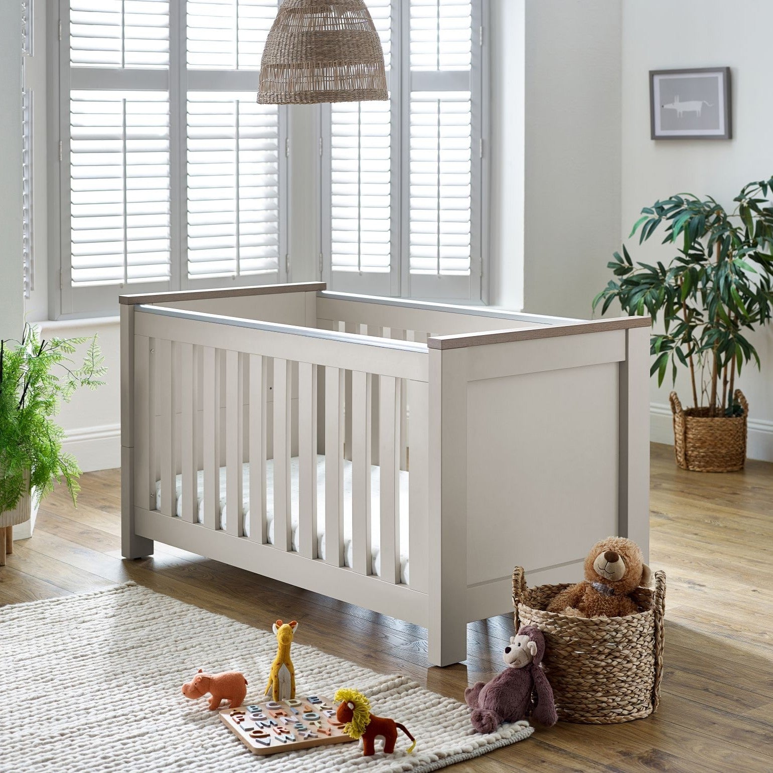 The Bordeaux Oatmeal cot bed offers a 3-position base, teething rail and effortlessly adapts from a cosy newborn crib to a stylish toddler bed, ensuring longevity beyond the early years.