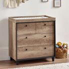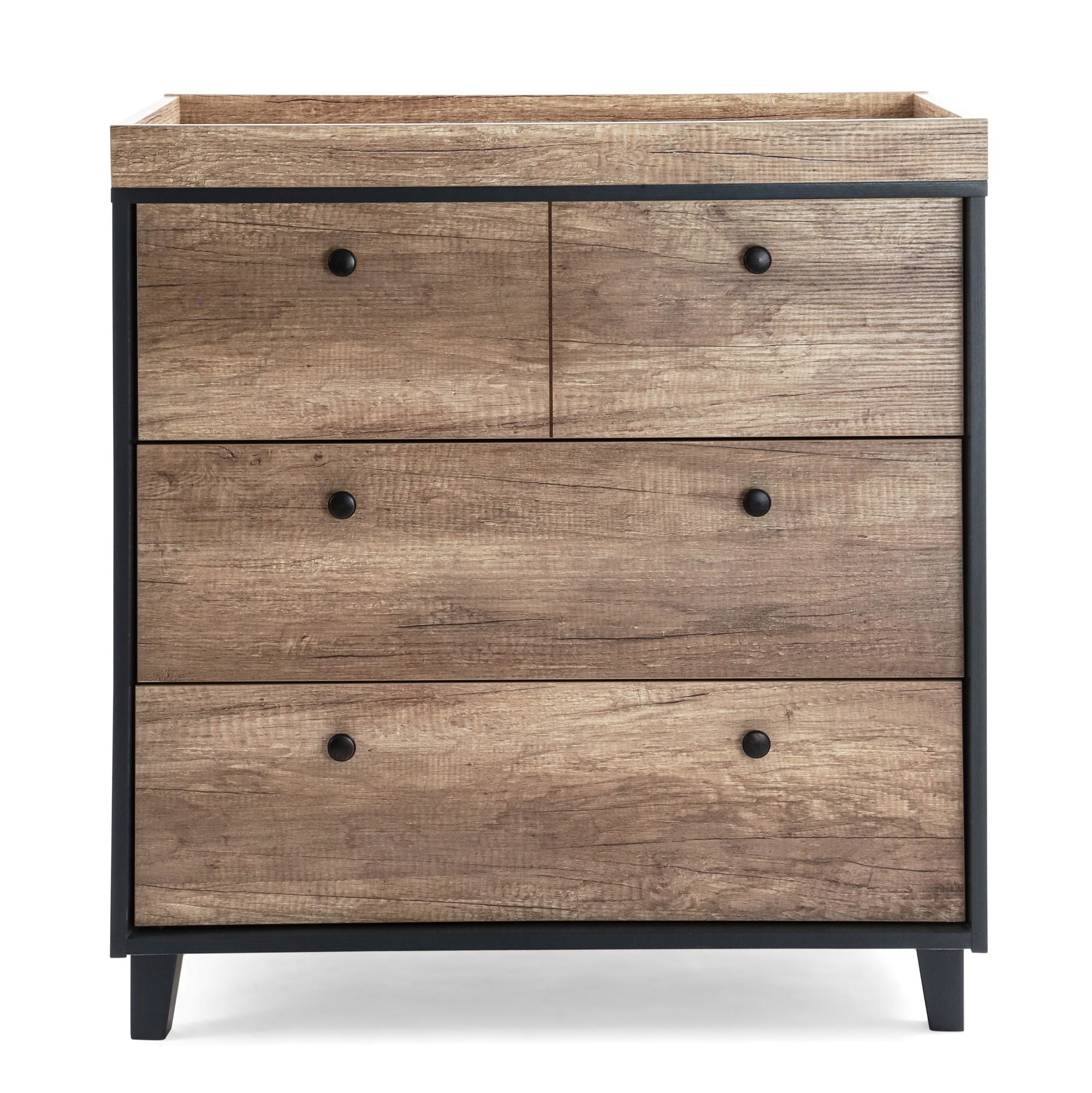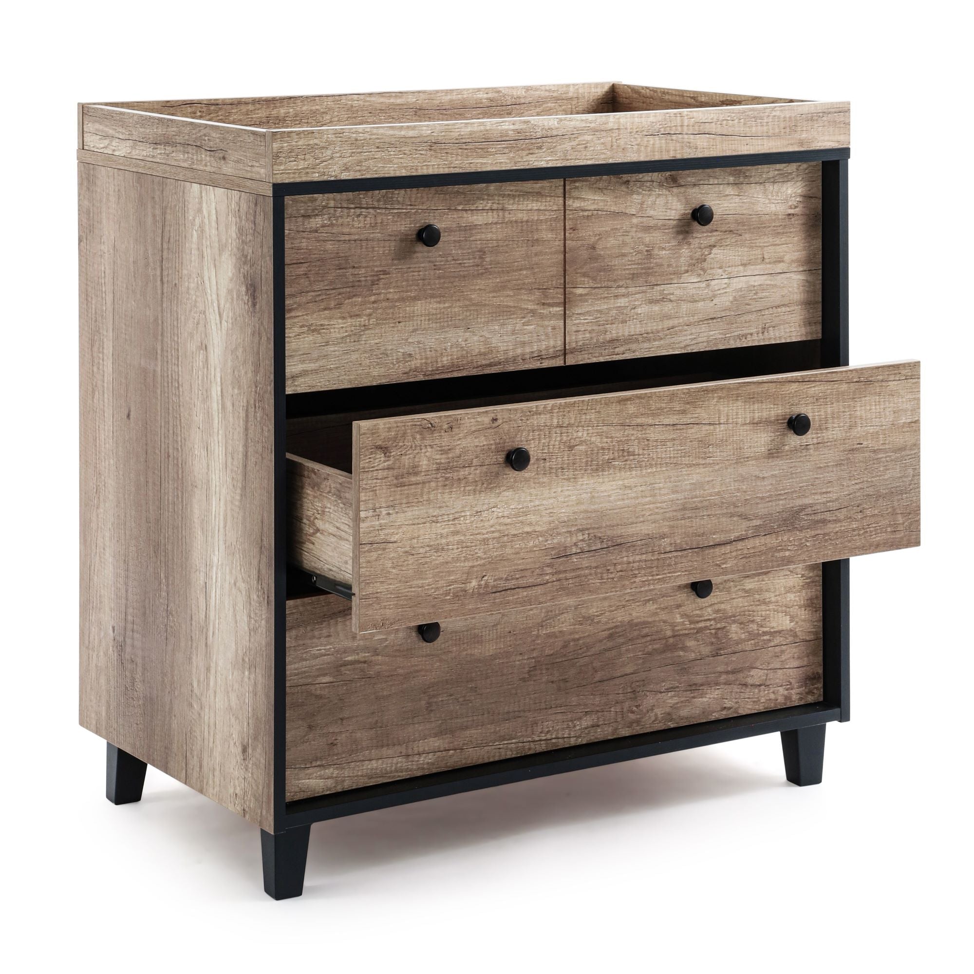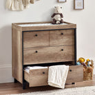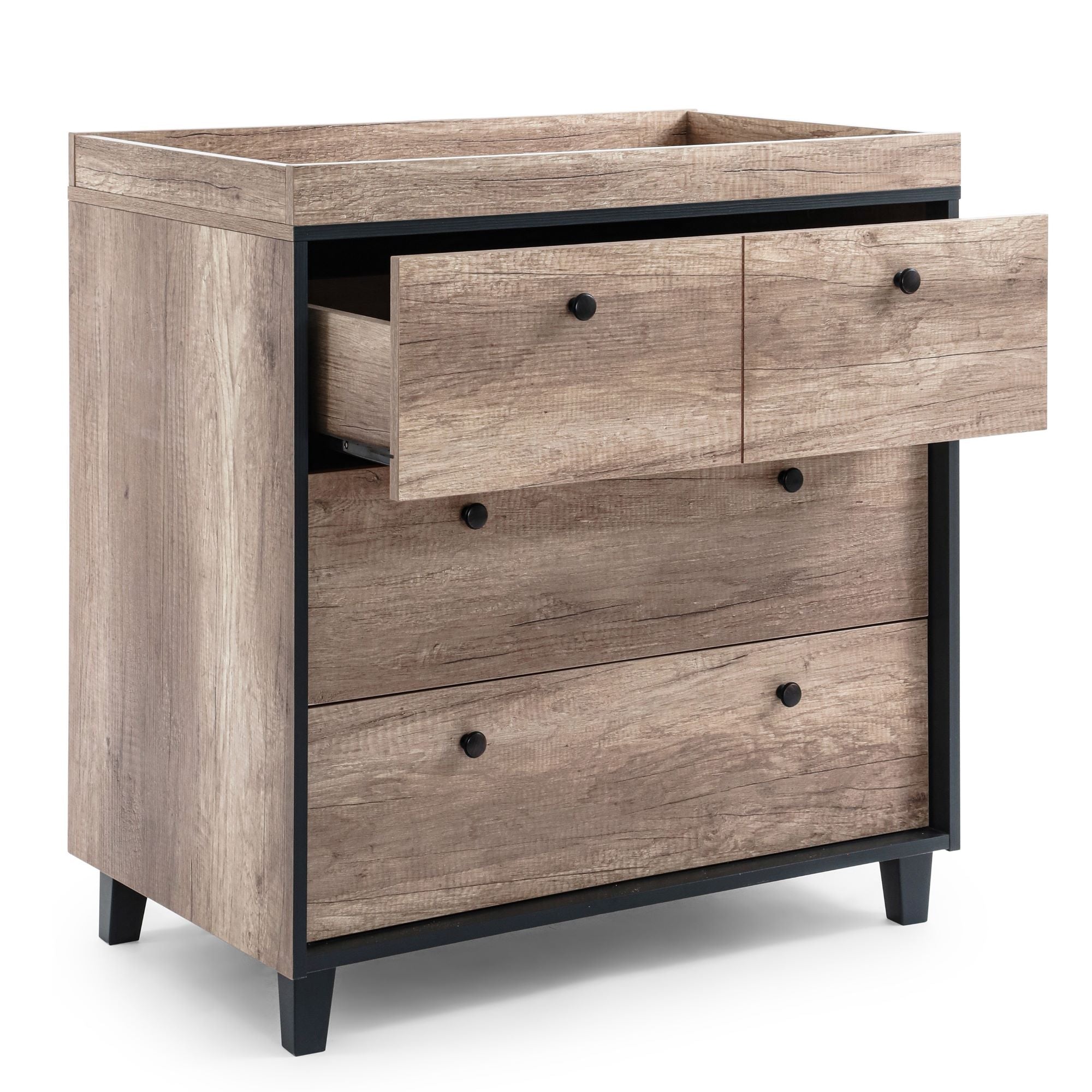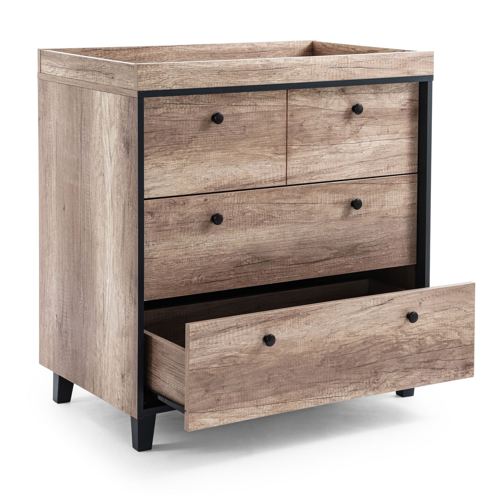 - Dresser – A spacious dresser with built in baby changer and three large drawers, finished with brushed brass knobs. The top drawer is cleverly disguised as two smaller drawers, revealing one space inside. (H92 x W85 x D53cm)