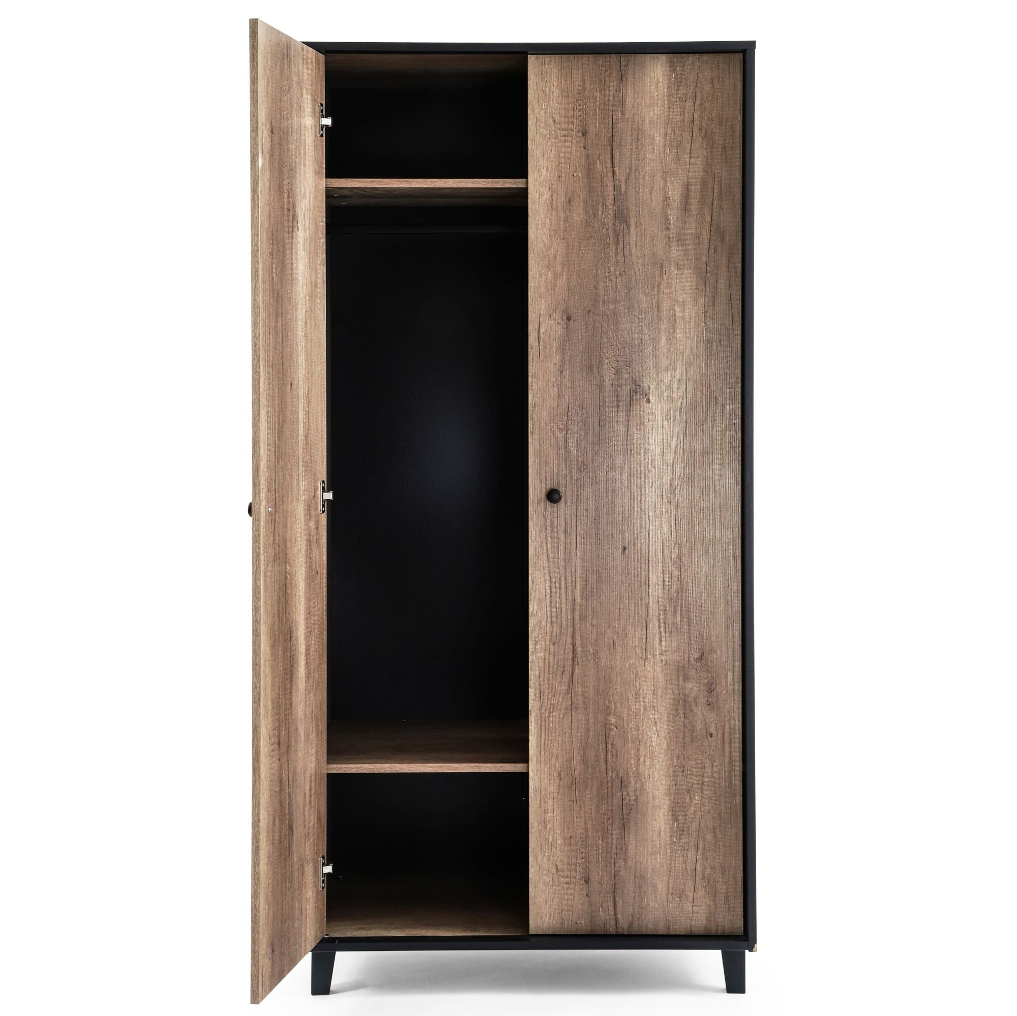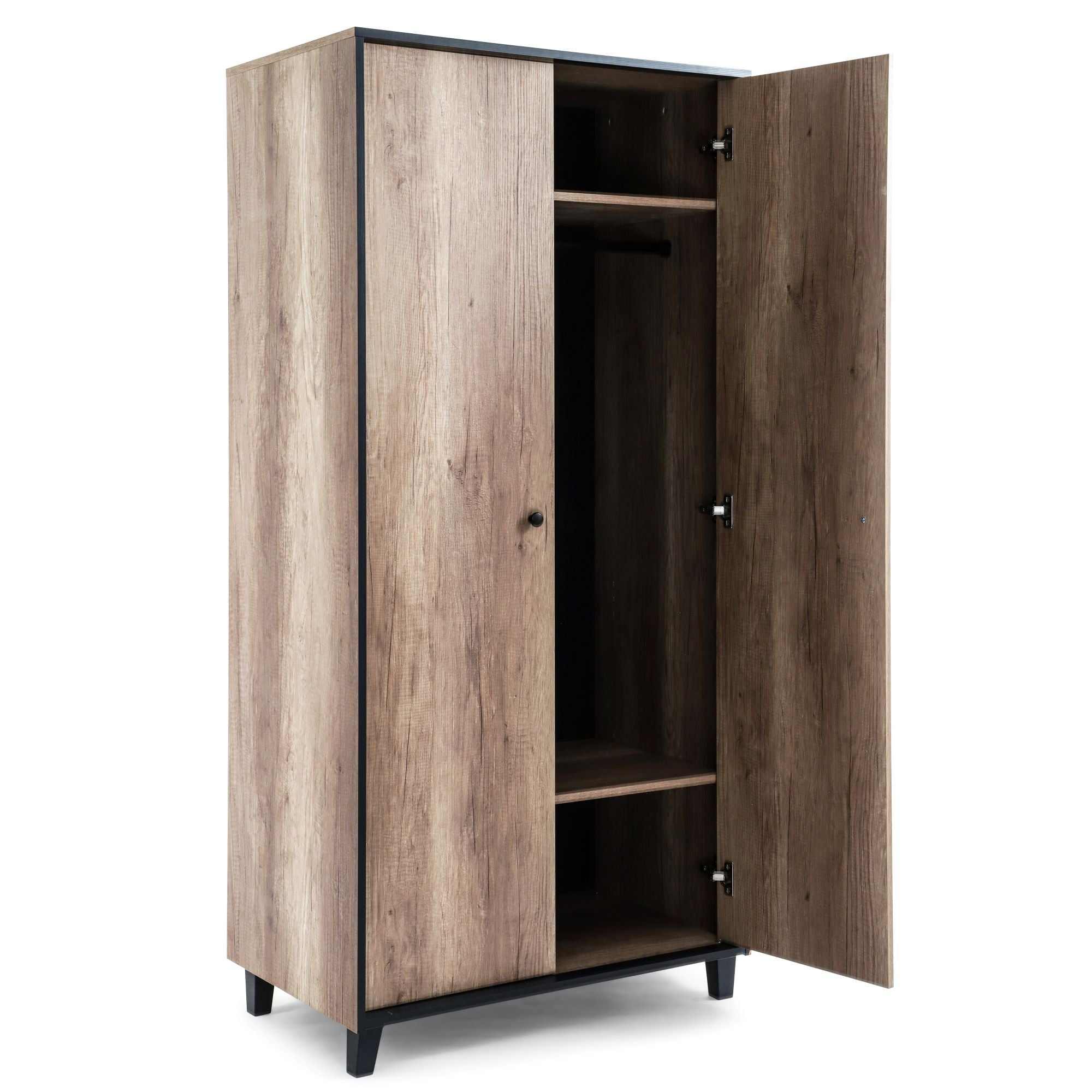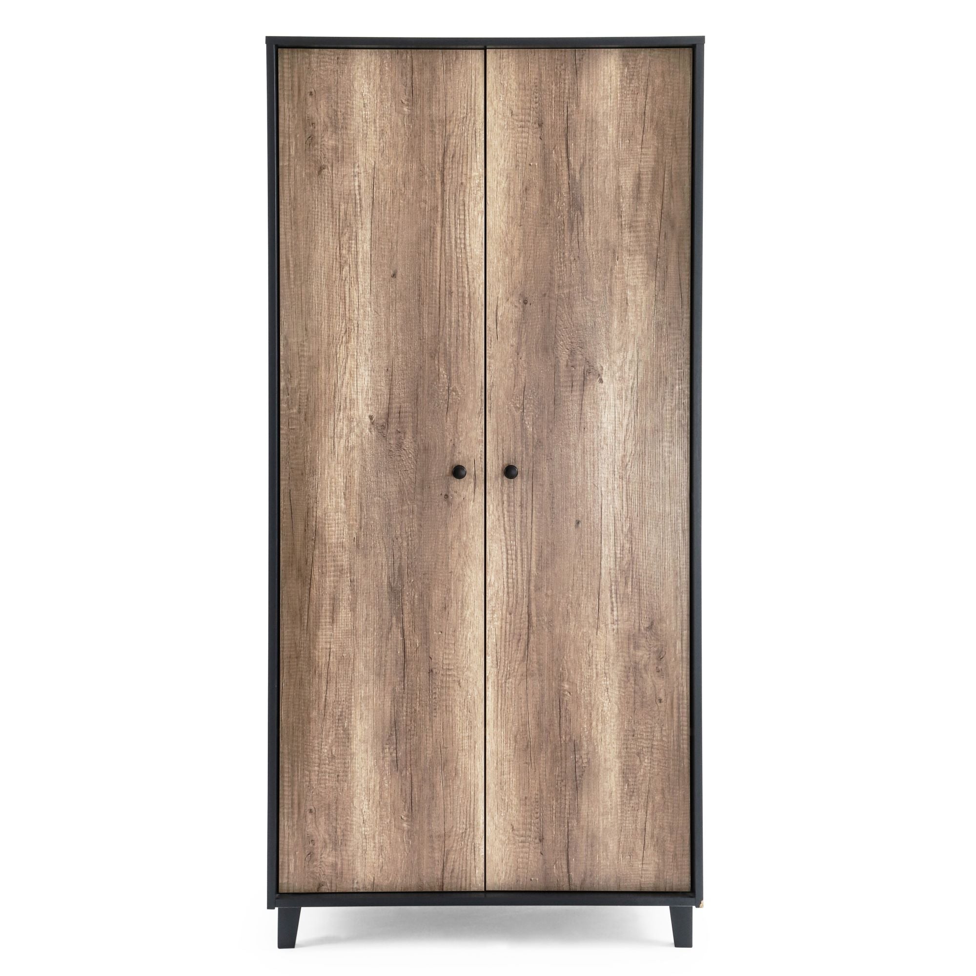 The Montana double wardrobe features a hanging rail and two shelves ready to organise your little one’s belongings, finished with brushed brass knobs.