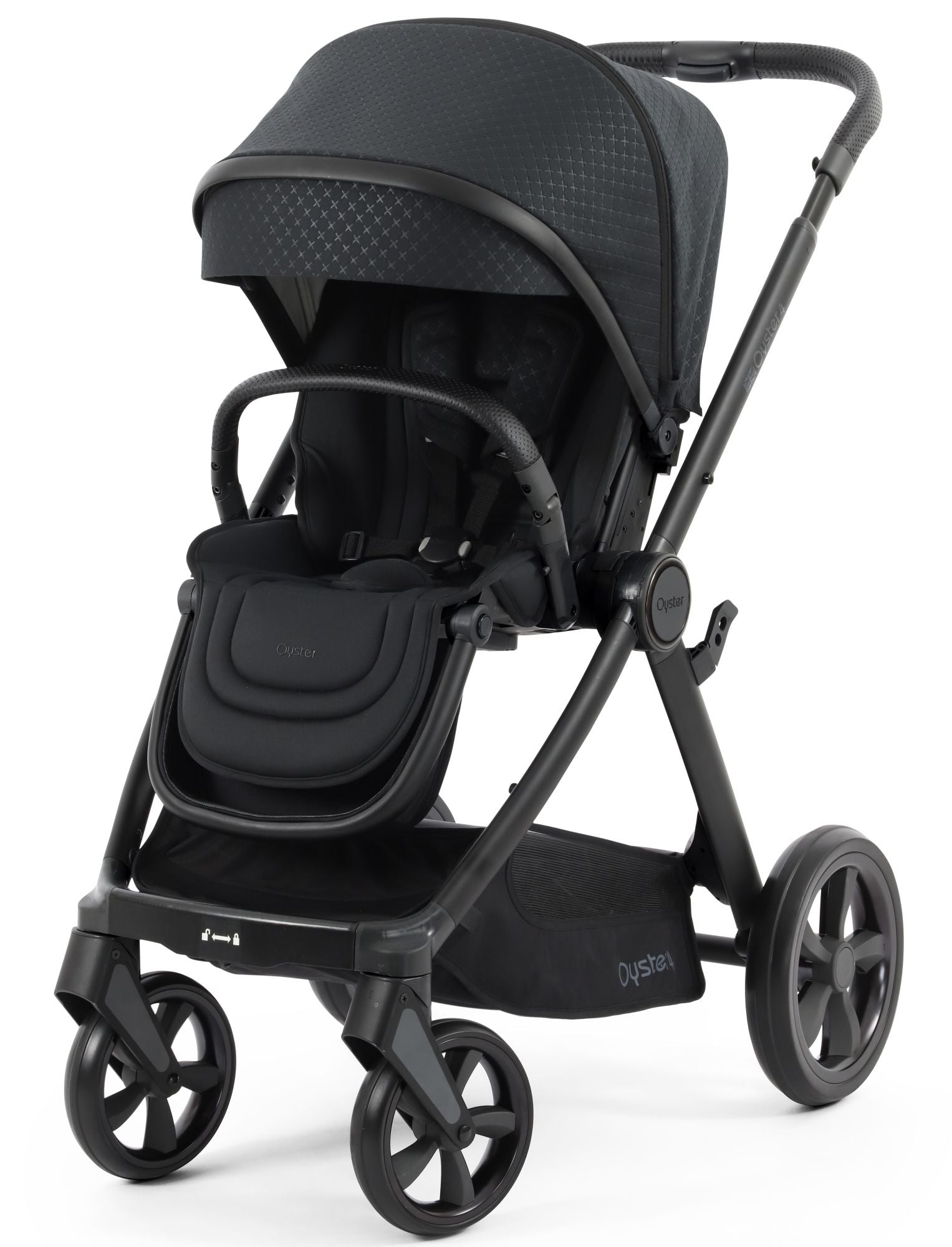 A one-hand reclining seat with lie-flat newborn option, adjustable calf rest, gated bumper bar, magnetic buckle, height adjustable headrest and harness, flip-flop friendly brake and 5kg shopping basket redefine ease. The Oyster4 also has an easy-to-adjust handle with a height range of 101-113cm.