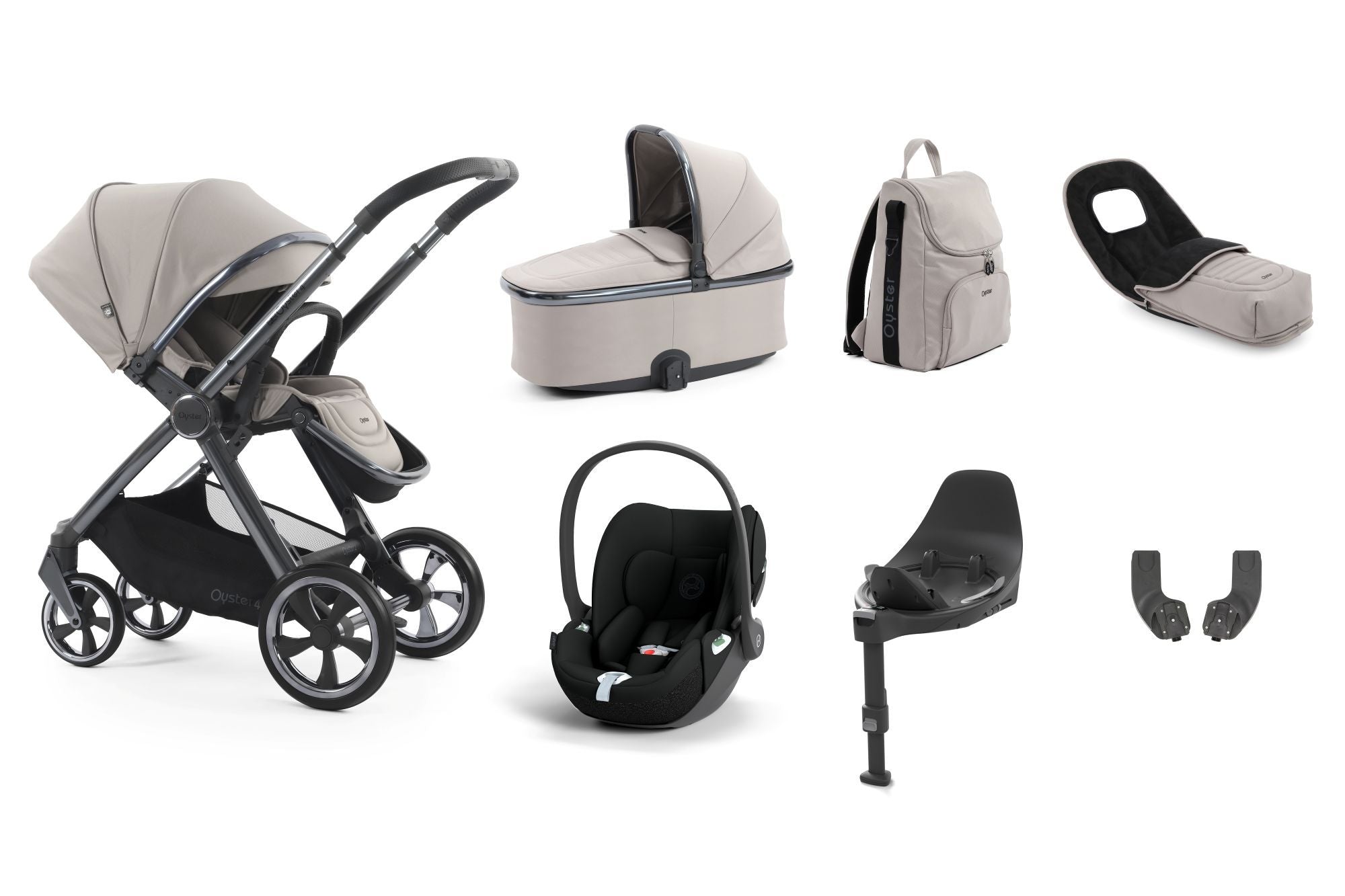 Babystyle Oyster 4 Luxury Travel System Bundle with Cybex Cloud T and Base T - Stone