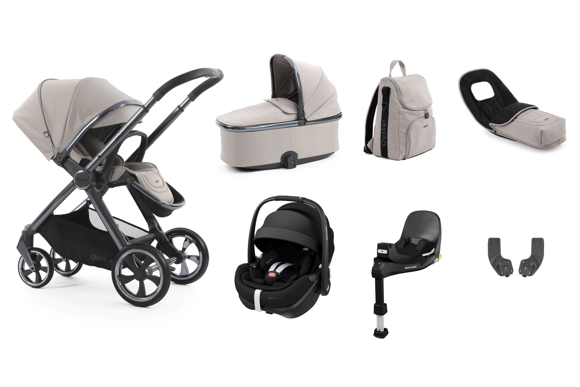Babystyle Oyster 4 Luxury Travel System Bundle with Maxi Cosi Pebble 360 Pro V2 and Familyfix 360 Pro - Stone