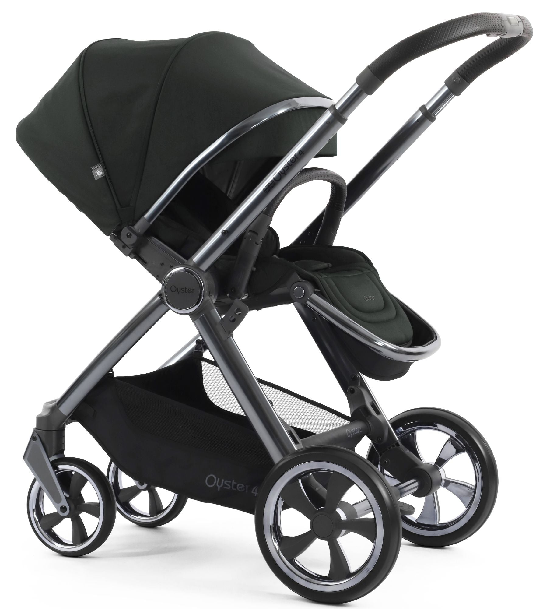 A one-hand reclining seat with lie-flat newborn option, adjustable calf rest, gated bumper bar, magnetic buckle, height adjustable headrest and harness, flip-flop friendly brake and 5kg shopping basket redefine ease. The Oyster4 also has an easy-to-adjust handle with a height range of 101-113cm.