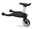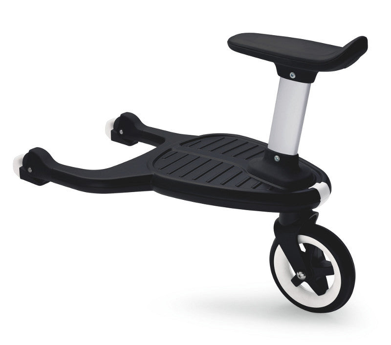 Create a comfortable ride for you and your child by attaching the new Bugaboo Comfort Wheeled Board, with detachable seat to the chassis of your Bugaboo pushchair in just two clicks. The well-known original Bugaboo Wheeled Board has been redesigned into the Bugaboo Comfort Wheeled Board to assure extra comfort for both you and your child. The flexible board positioning - left or right from the center - creates extra walking space. Featuring Bugaboo’s signature suspension for a bump-free stroll, the board offers your child the option to stand or sit with an easy to attach seat. When not in use, the board can easily be clicked up or detached.