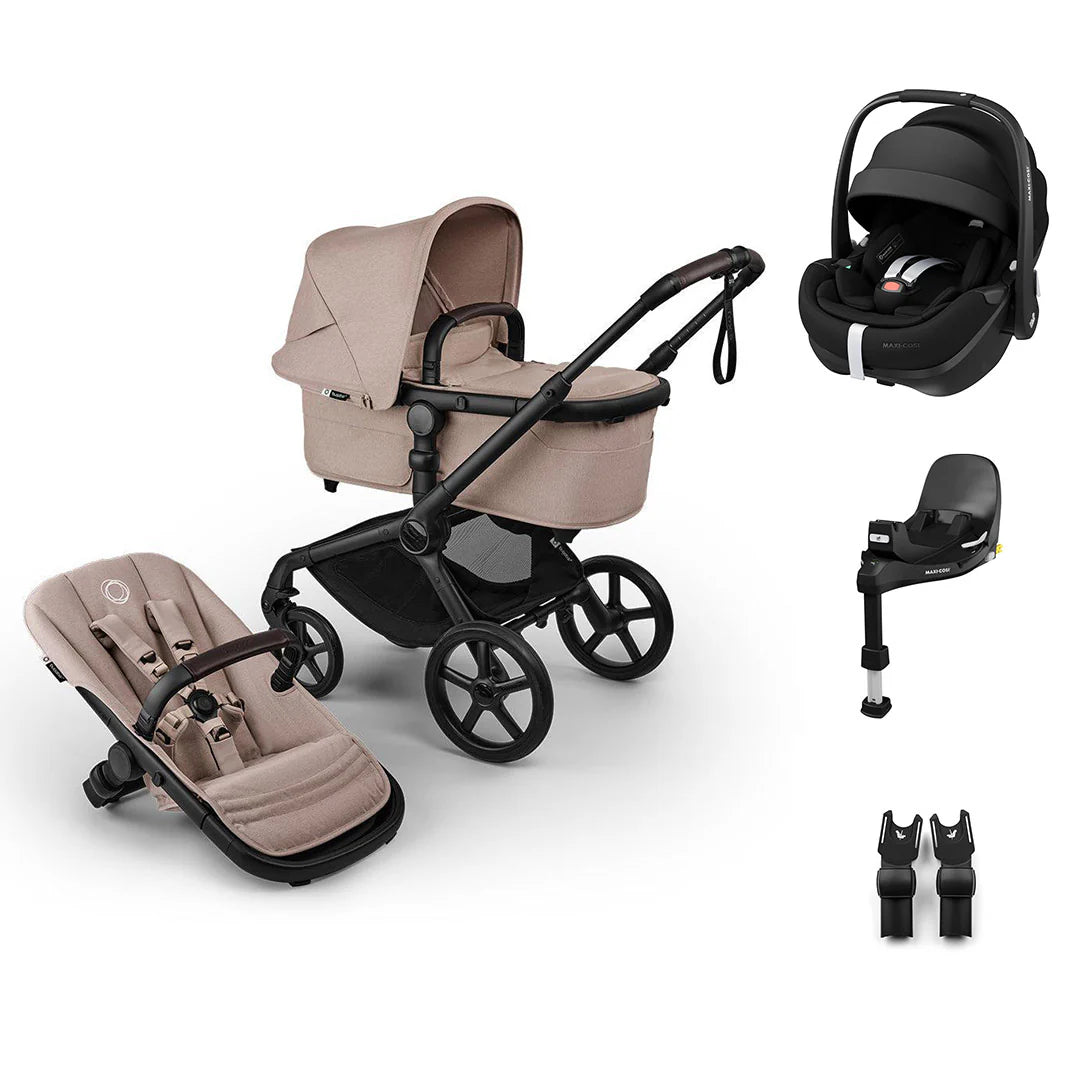 Bugaboo Fox 5 Renew & Maxi Cosi Pebble 360 Pro V2 Travel System - Black/Desert Taupe Melange