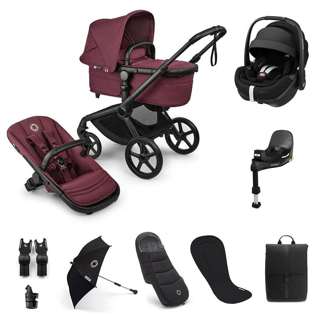 Bugaboo Fox 5 Renew & Maxi Cosi Pebble 360 Pro V2 Ultimate Newborn Bundle - Black/Dark Cherry