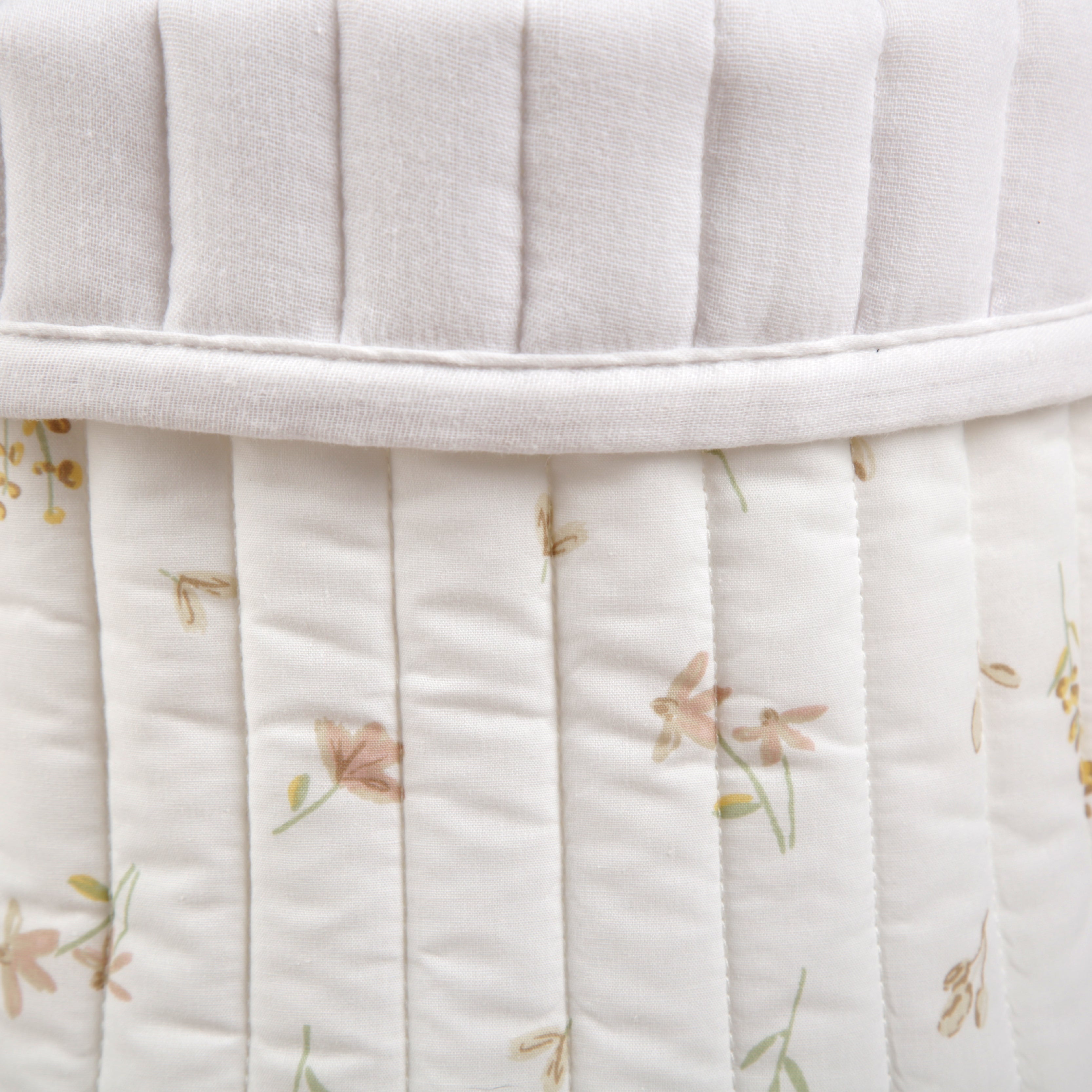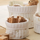 Stylish storage for your nursery’s little essentials. This set of three quilted baskets is made from soft-touch cotton in the CuddleCo Cashmere Meadow print, ideal for storing toys, nappies, muslins or tiny clothes. Lightweight and flexible, they’re safe for little ones and reversible for versatile styling. Whether placed on shelves, used next to changing stations or internal wardrobe organisation, they help keep things tidy in the loveliest way.