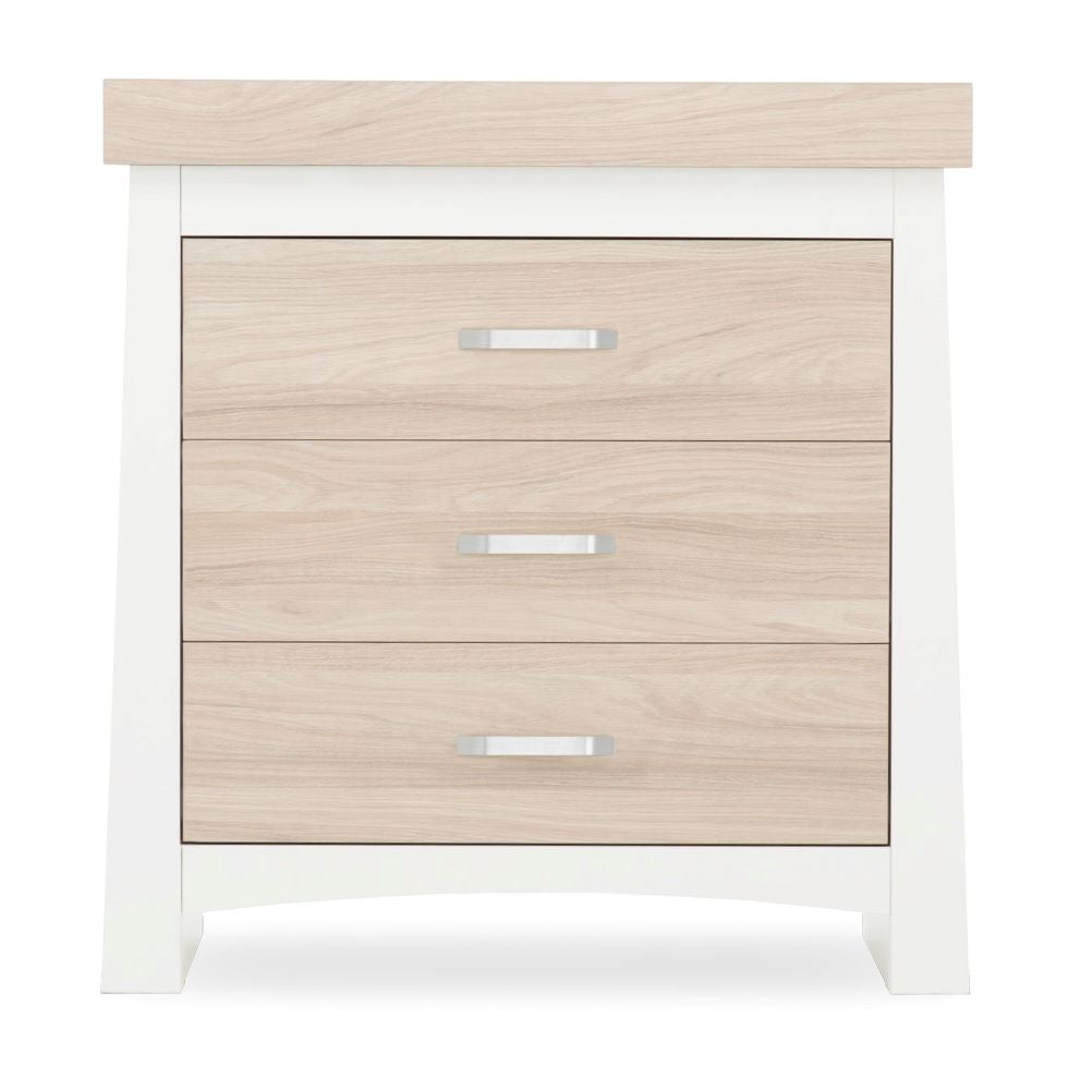 The Ada Dresser Changer has a 2-in-1 design that combines a changing unit with storage for a convenient, space-saving piece of nursery furniture. The dresser changer has a changing surface to place your baby’s changing mat. Underneath the changing top, you’ll find 3 deep drawers to hide away your baby’s changing essentials while keeping them close by for ease of use. When you no longer need the changing surface, simply remove it to convert Ada into a standalone dresser.