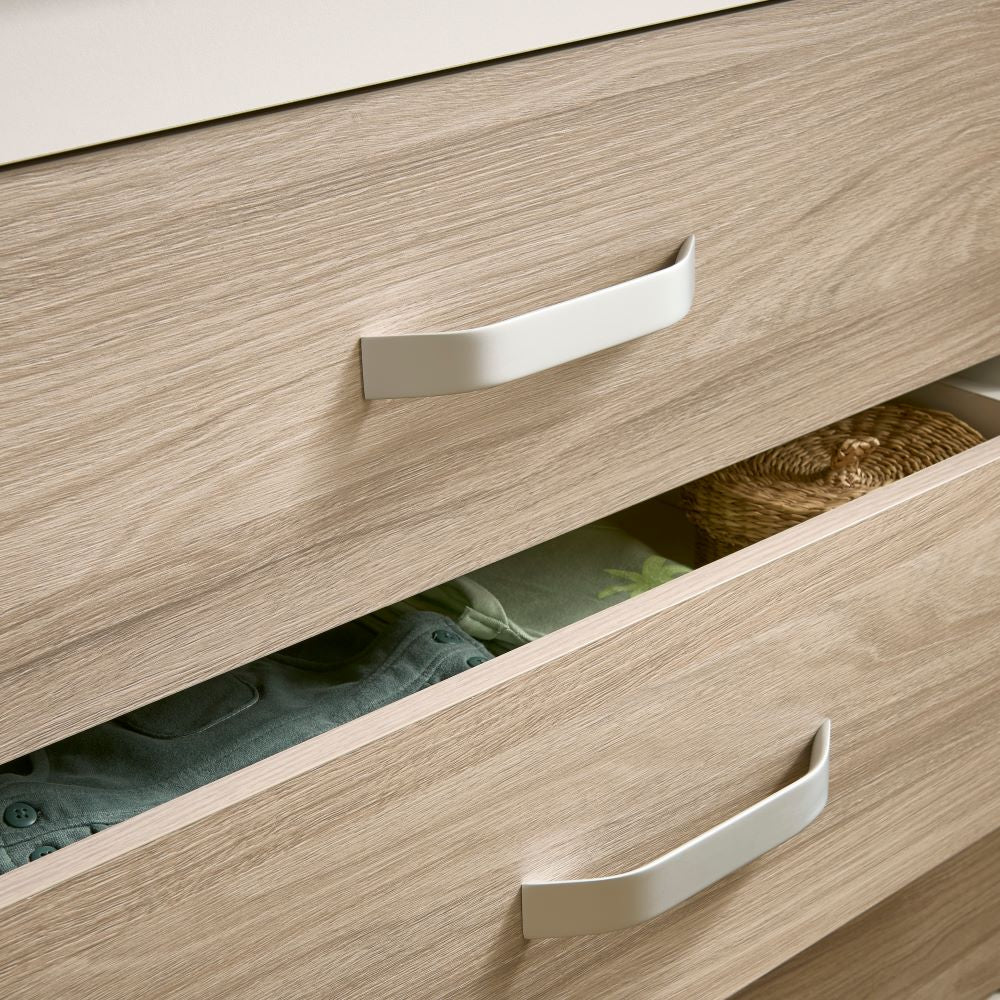 The Ada Dresser Changer has a 2-in-1 design that combines a changing unit with storage for a convenient, space-saving piece of nursery furniture. The dresser changer has a changing surface to place your baby’s changing mat. Underneath the changing top, you’ll find 3 deep drawers to hide away your baby’s changing essentials while keeping them close by for ease of use. When you no longer need the changing surface, simply remove it to convert Ada into a standalone dresser.