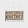 Built for everyday family life, Burford adapts as your baby grows with three adjustable mattress base positions, helping you keep them safe and comfortable as they begin to roll, sit and stand. When the time comes, the cot bed converts easily into a toddler bed, extending its use to around five years and offering excellent long-term value.