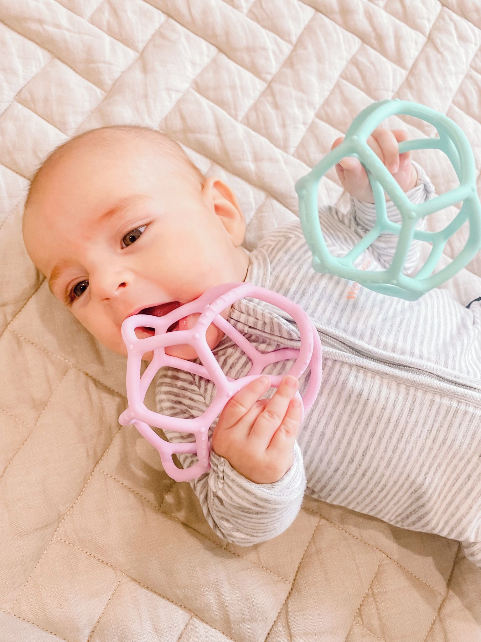 Free from any nasty chemicals, the Sensory Ball is made from food-grade silicone so babies can chew on the soft, safe surface to soothe their aching gums. The open frame design allows them to easily grab the Sensory Ball and bring it to their mouths when any toothy troubles arise.