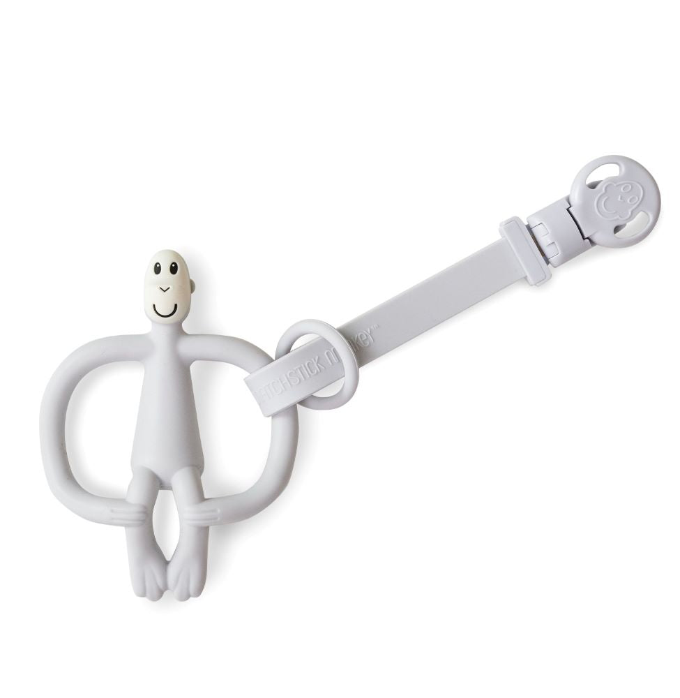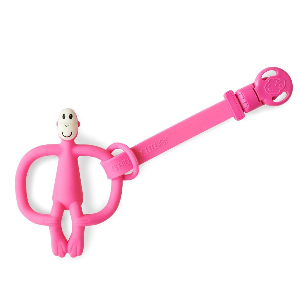 Matchstick Monkey Double Soother Clips - Pink & Cool Grey
