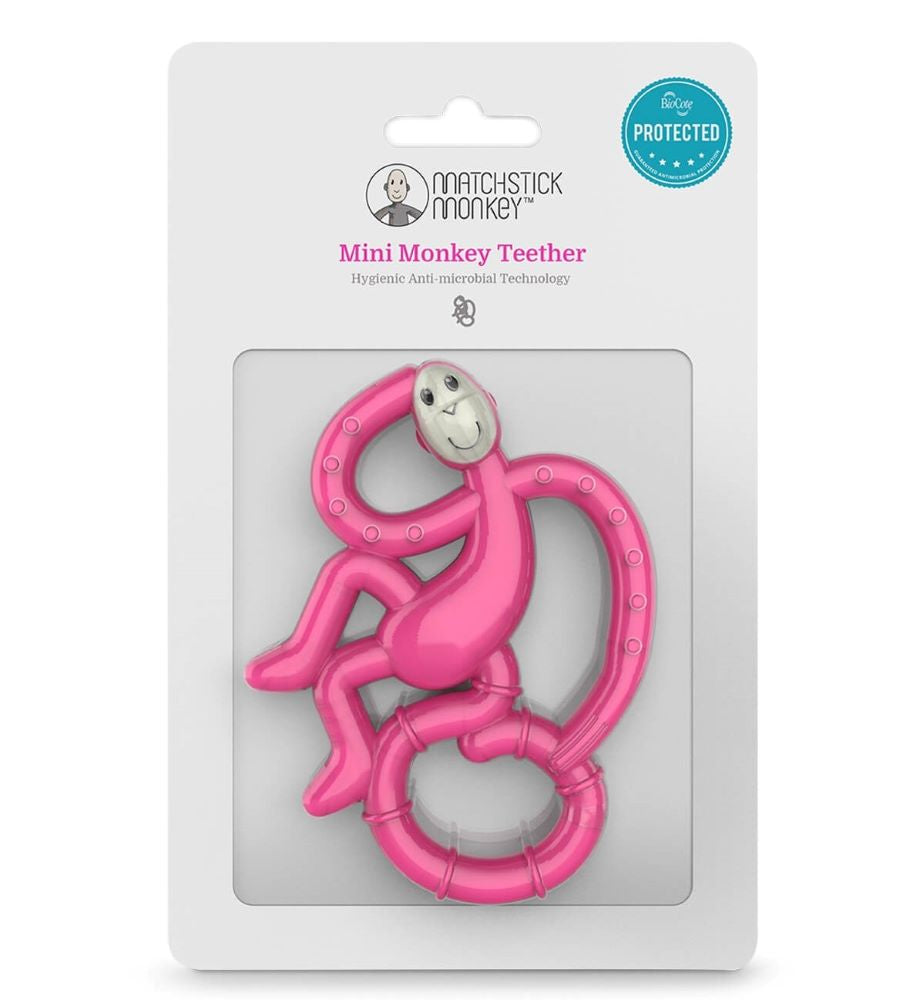 A fun and flexible textured teether that's perfect for very young babies. The BioCote® Antimicrobial Protection helps keep germs at bay, whilst the textured bumps gently massage your baby's gums to relieve pain. Cute and compact, Mini Monkey is perfect for keeping in your baby bag when you're on the go.