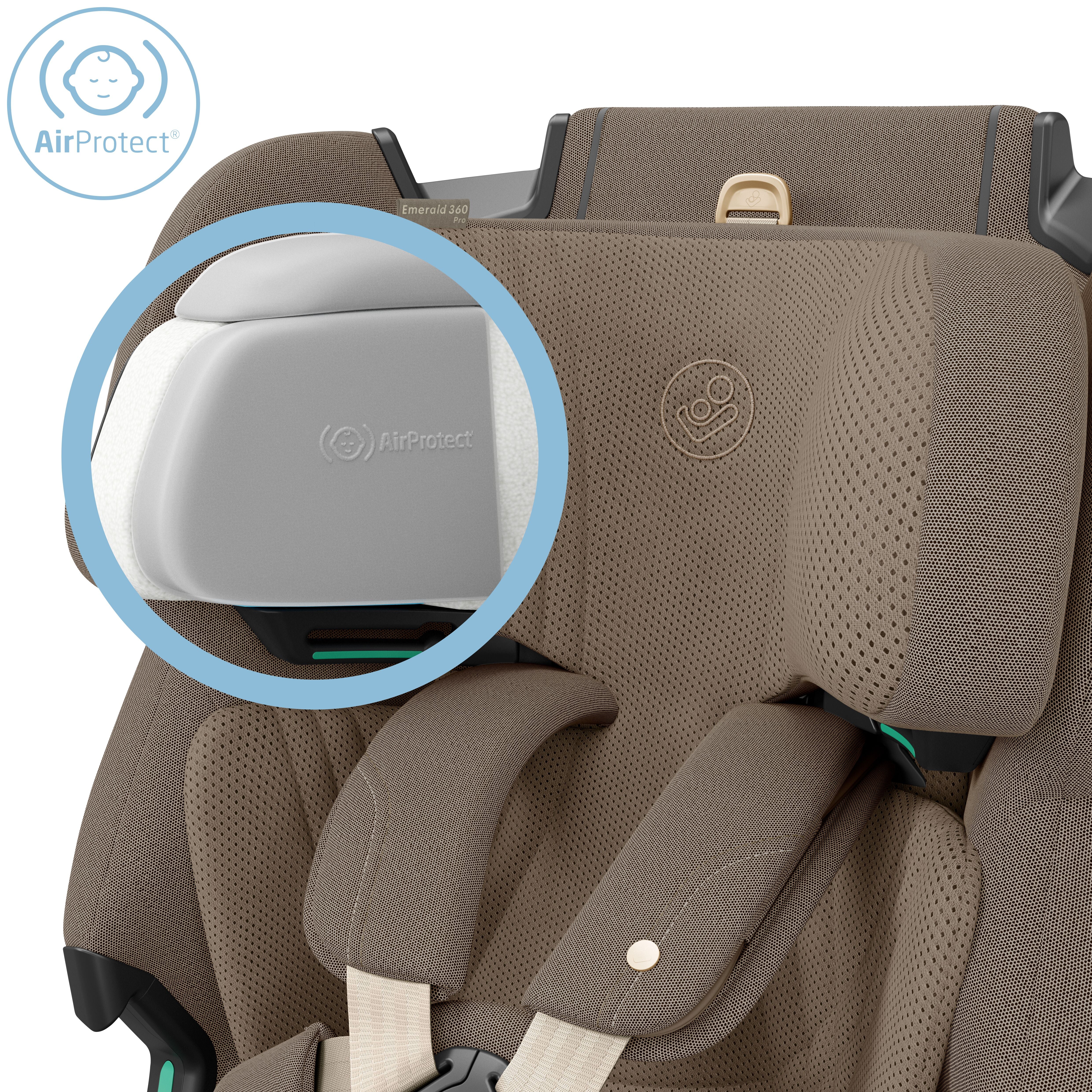 - Emerald 360 Pro features an integrated ISOFIX base with 360° rotation and visual indicators for correct and safe installation, and a support leg for extra stability.