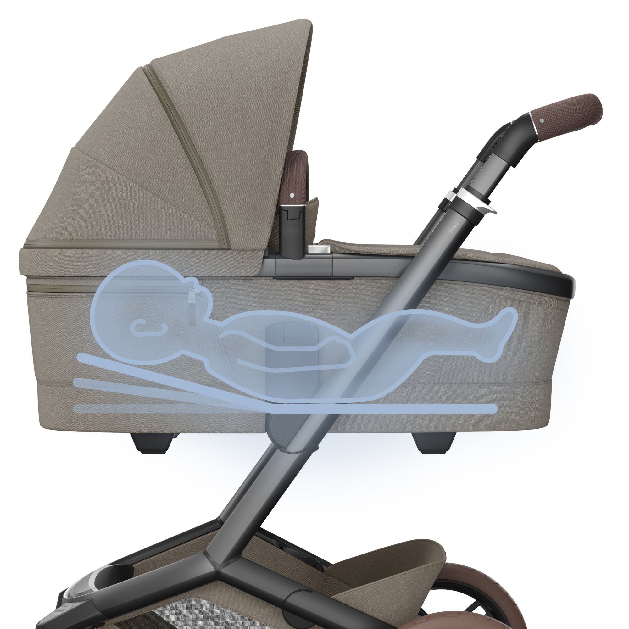 Soothing Slope: The carrycot is designed with an integrated Soothing Slope. Simply pull a strap to gently raise your baby into an inclined sleeping position.