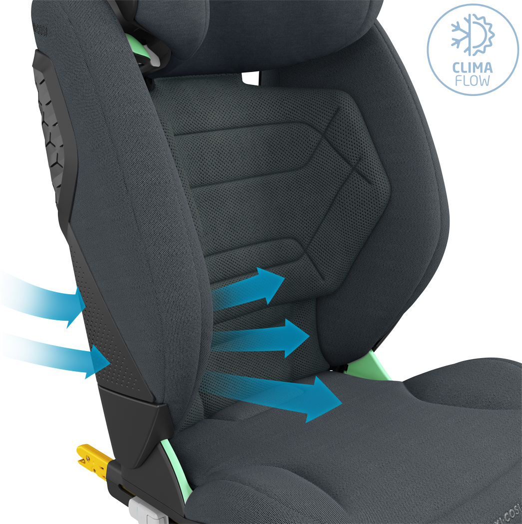 RodiFix Pro² i-Size has three recline positions, which gives children the choice to either sit up straight or recline back slightly and sleep. The AirProtect® Safety cushions are not only protective, they're also extremely soft and provide even more cushioning. The upgraded RodiFix Pro² i-Size has extra padding in the seat for improved comfort and an extra wide backrest, to further enhance your child's comfort as they grow. Made using premium 100% recycled EcoCare fabric, RodiFix Pro² i-Size is distinguishable thanks to it's embossed branding details and premium stitching lines. The seat also features improved ClimaFlow ventilations panels, breathable foam and performance fabrics that enhance air circulation and keep your child at a comfortable temperature, at all times.