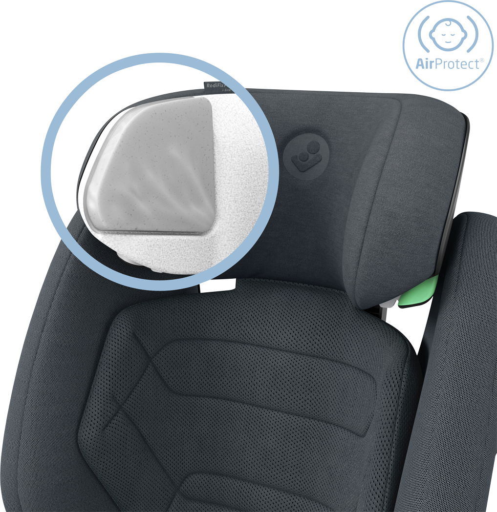 - Patented AirProtect® side impact protection in the headrest reduces the risk of head injury by up to 20% and cushioning enhances comfort for your child.