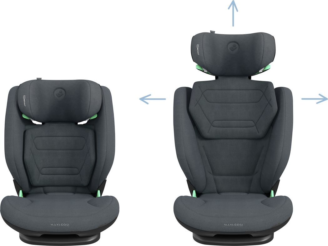 With ISOFIX connectors it’s easy to install the RodiFix Pro² i-Size. And with no armrests to get in the way, buckling-up is always quick and hassle-free. So easy in fact, that independent children can buckle-up themselves. You may not be able to stop your child from growing up so fast, but you can keep up with them, as the seat’s adjustable design grows both in height and width. Just press a button on the back of the headrest to adjust the height as they get taller and easily move the intuitive side wings out as they get bigger.