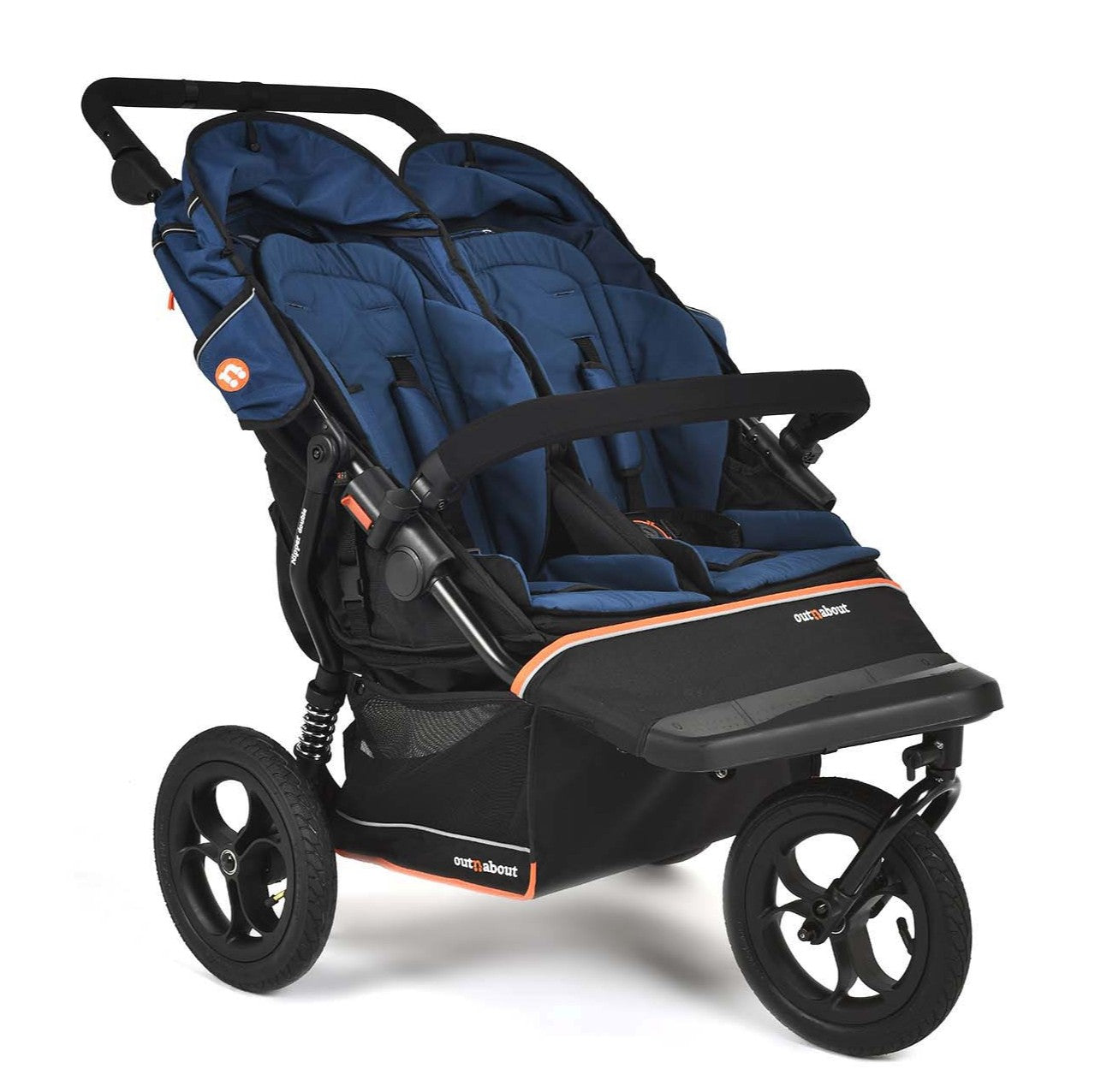 The Nipper Double V6 is our most advanced and versatile double pushchair to date – suitable from newborn to around 4 years old. Built with a durable design that’s made to last (and with access to spare parts when you need them), this all-terrain 3-wheel buggy has 12” air-filled tyres, rear suspension, a swivel-lock front wheel for stability on rough ground, and a lightweight aluminium frame that’s easy to handle. It seats two children (22kg capacity each) yet is just 71cm wide, so it fits through standard doorways with ease.