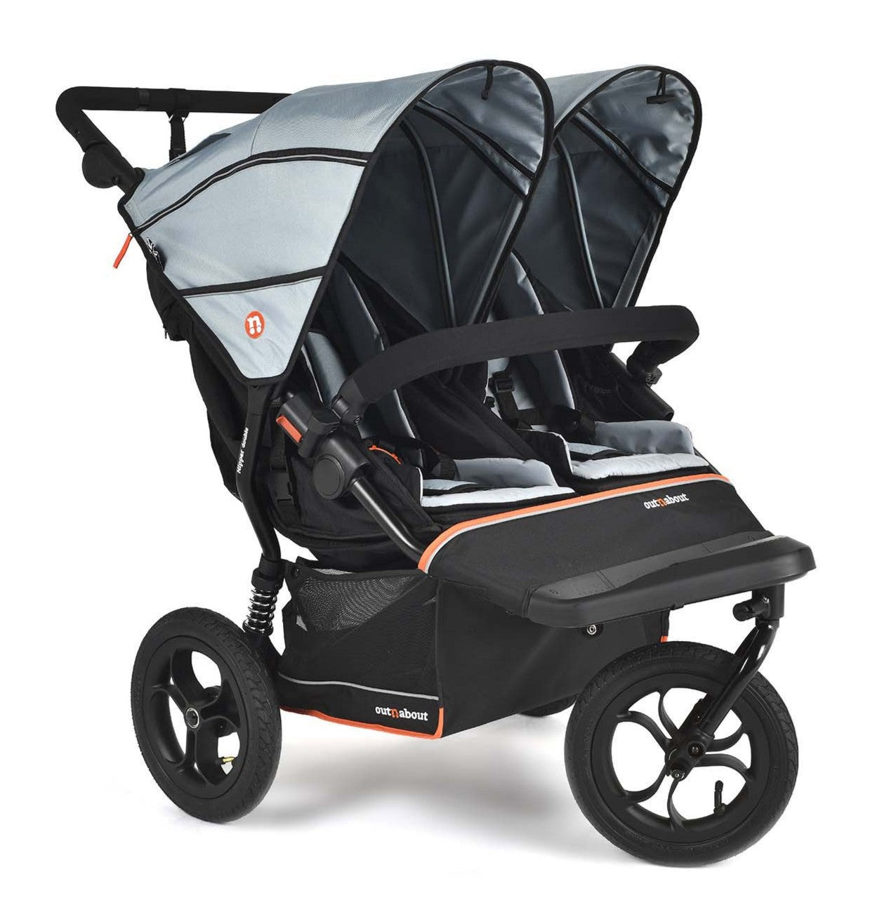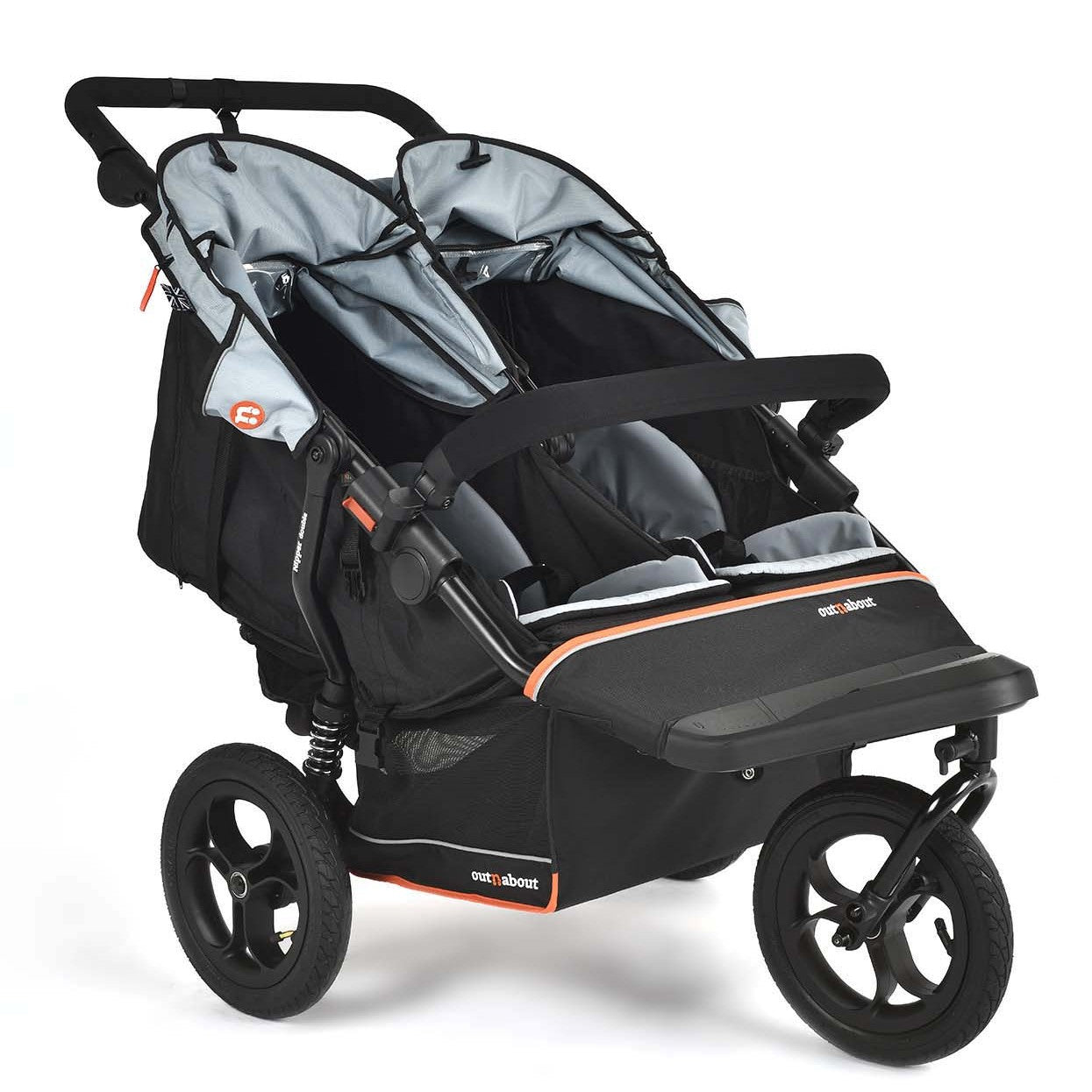 The Nipper Double V6 is our most advanced and versatile double pushchair to date – suitable from newborn to around 4 years old. Built with a durable design that’s made to last (and with access to spare parts when you need them), this all-terrain 3-wheel buggy has 12” air-filled tyres, rear suspension, a swivel-lock front wheel for stability on rough ground, and a lightweight aluminium frame that’s easy to handle. It seats two children (22kg capacity each) yet is just 71cm wide, so it fits through standard doorways with ease.