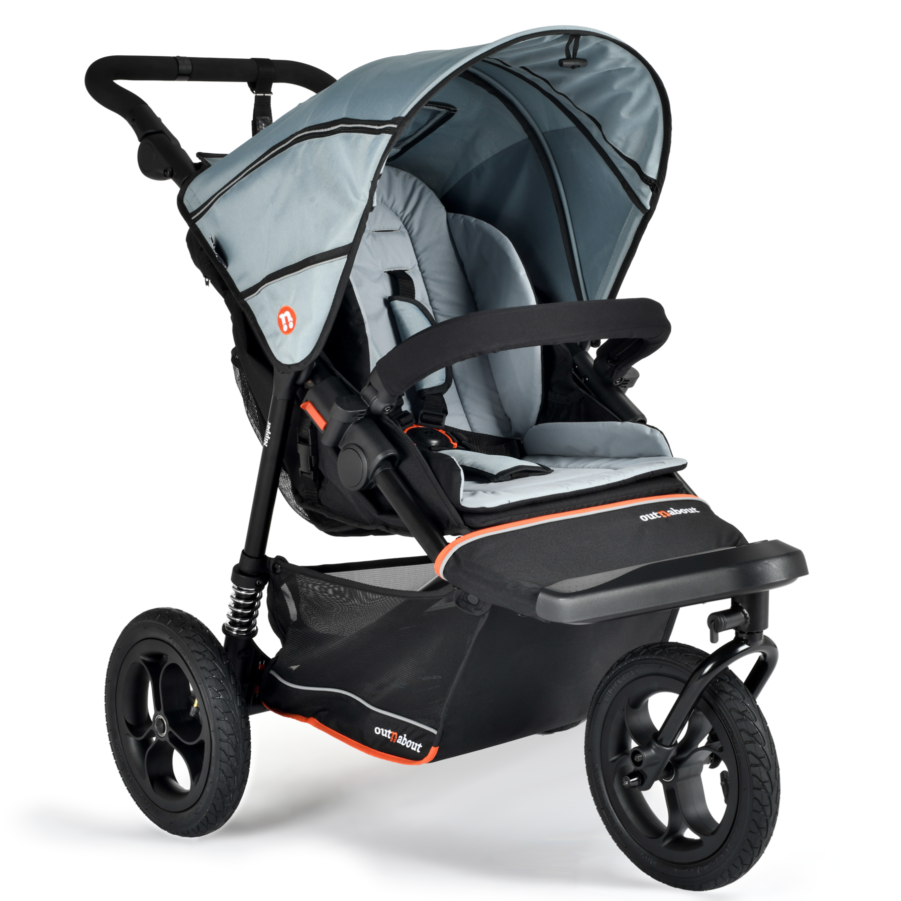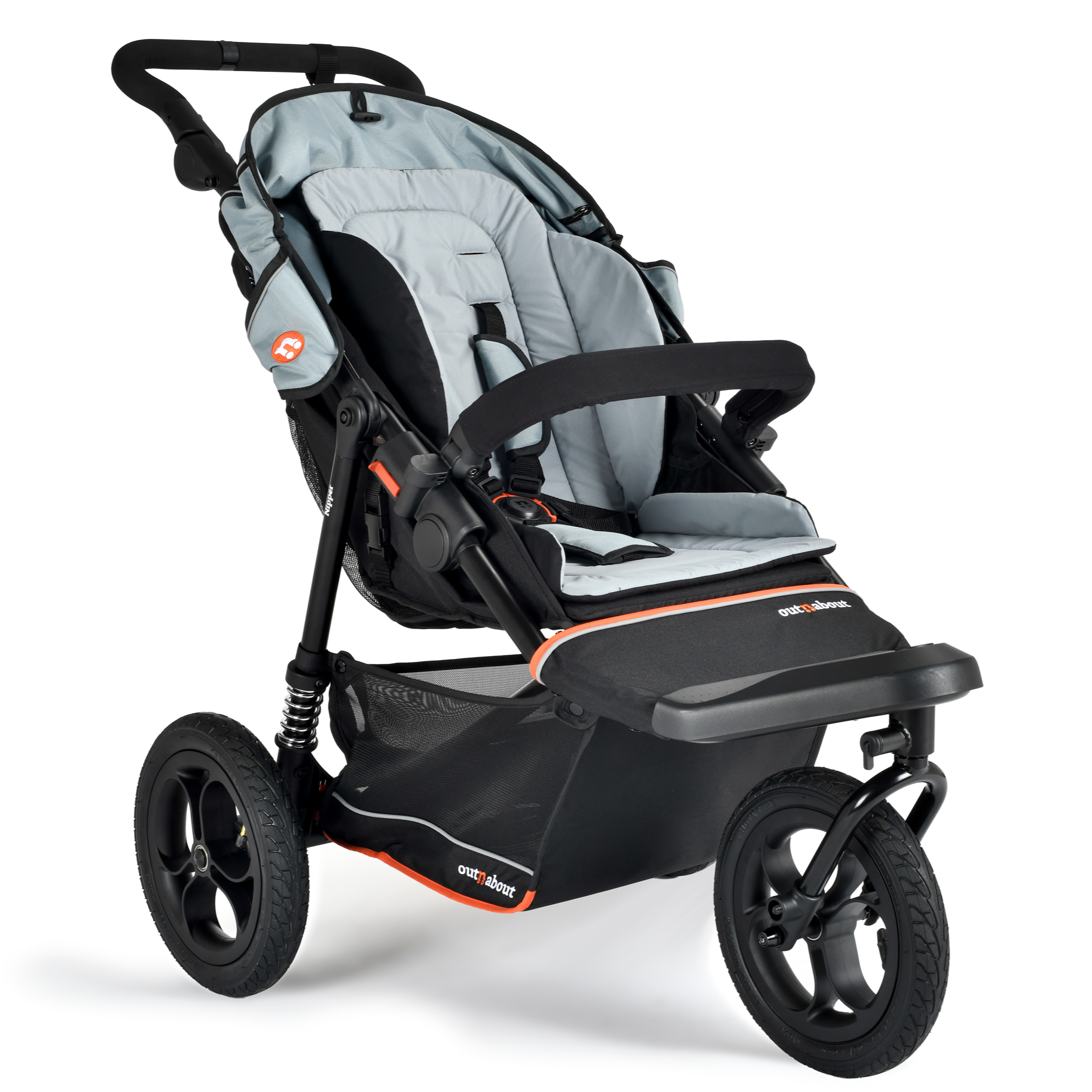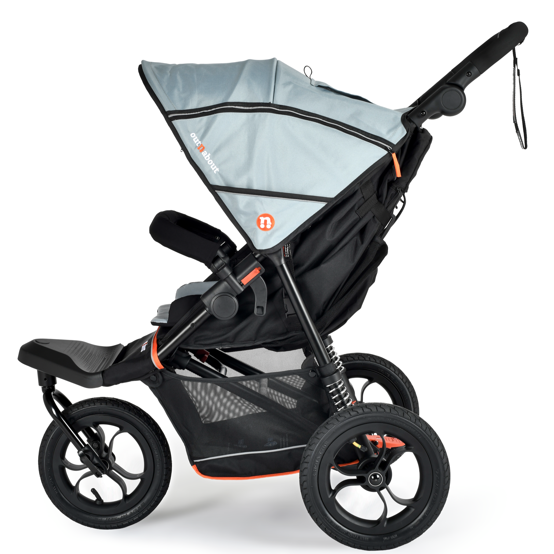 The Nipper V6 pushchair is the most versatile and feature-rich buggy Out’n’About has ever made, built to go places other buggies simply can’t. This all-terrain 3-wheel pushchair is lightweight, easy to handle, and ready for real family life from newborn to around 4 years old. It features 12” air-filled tyres, a swivel-lock front wheel for stability on rough ground, and a compact design just as suited to shops and school runs as it is to off-road tracks.