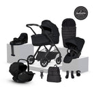 Included in the Ultimate 360 Car Seat Bundle: Reef 2, an overnight sleeping approved foldable carrycot lined in soft bamboo, coordinating vegan leather changing backpack with changing mat, thermal padded footmuff, cup holder, phone holder, the lie-flat Glide Plus 360 infant carrier, 360° rotating ISOFIX Base Plus 360, universal car seat adaptors and