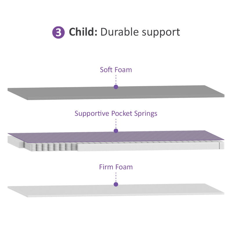 The Snuz Surface features patent-pending TripleCore technology. The SnuzSurface is the only mattress that changes it’s support to meet the needs of your little one through the key stages of their development - from birth to toddler and child up to 7 years.