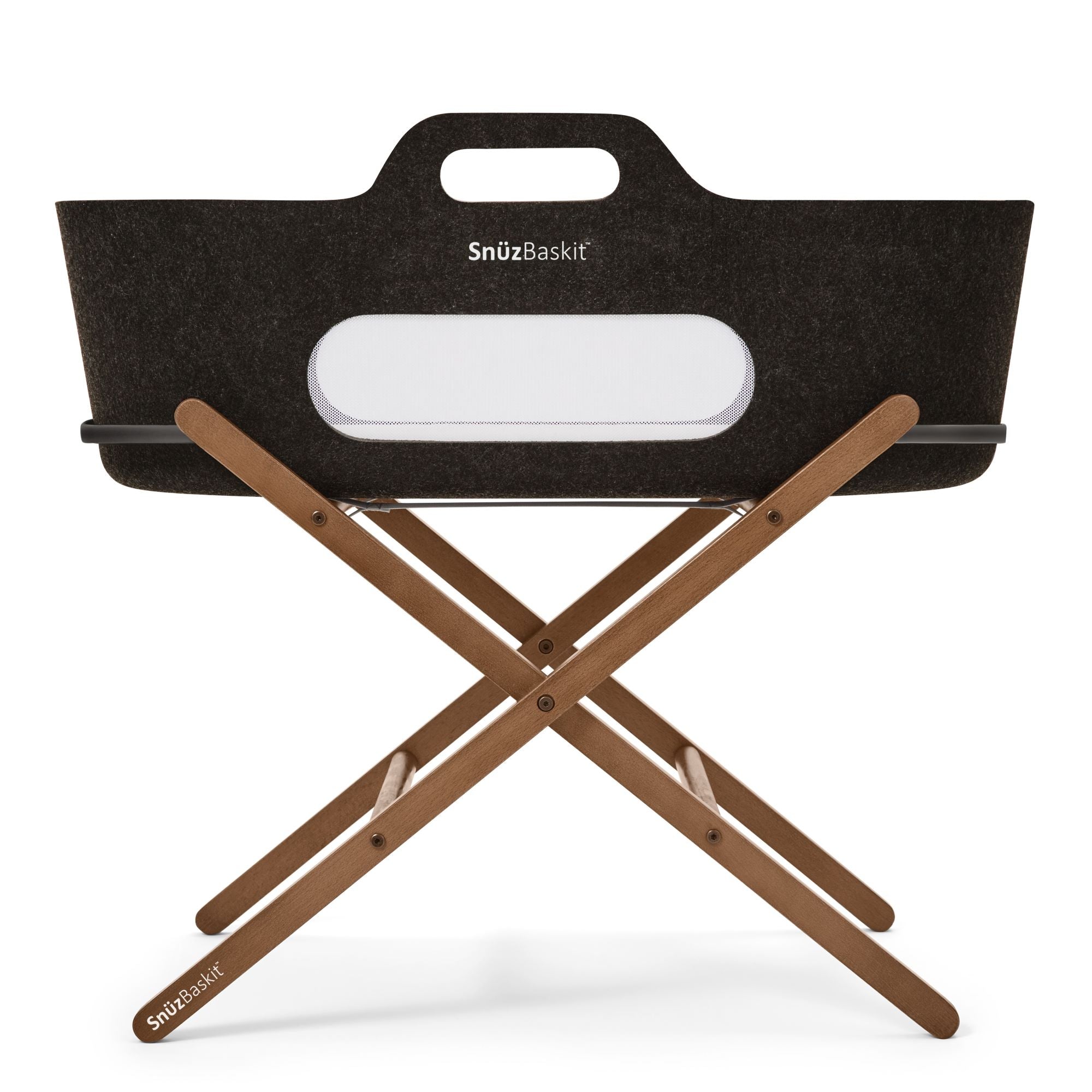SnuzBaskit Graphite Moses Basket and Walnut Stand