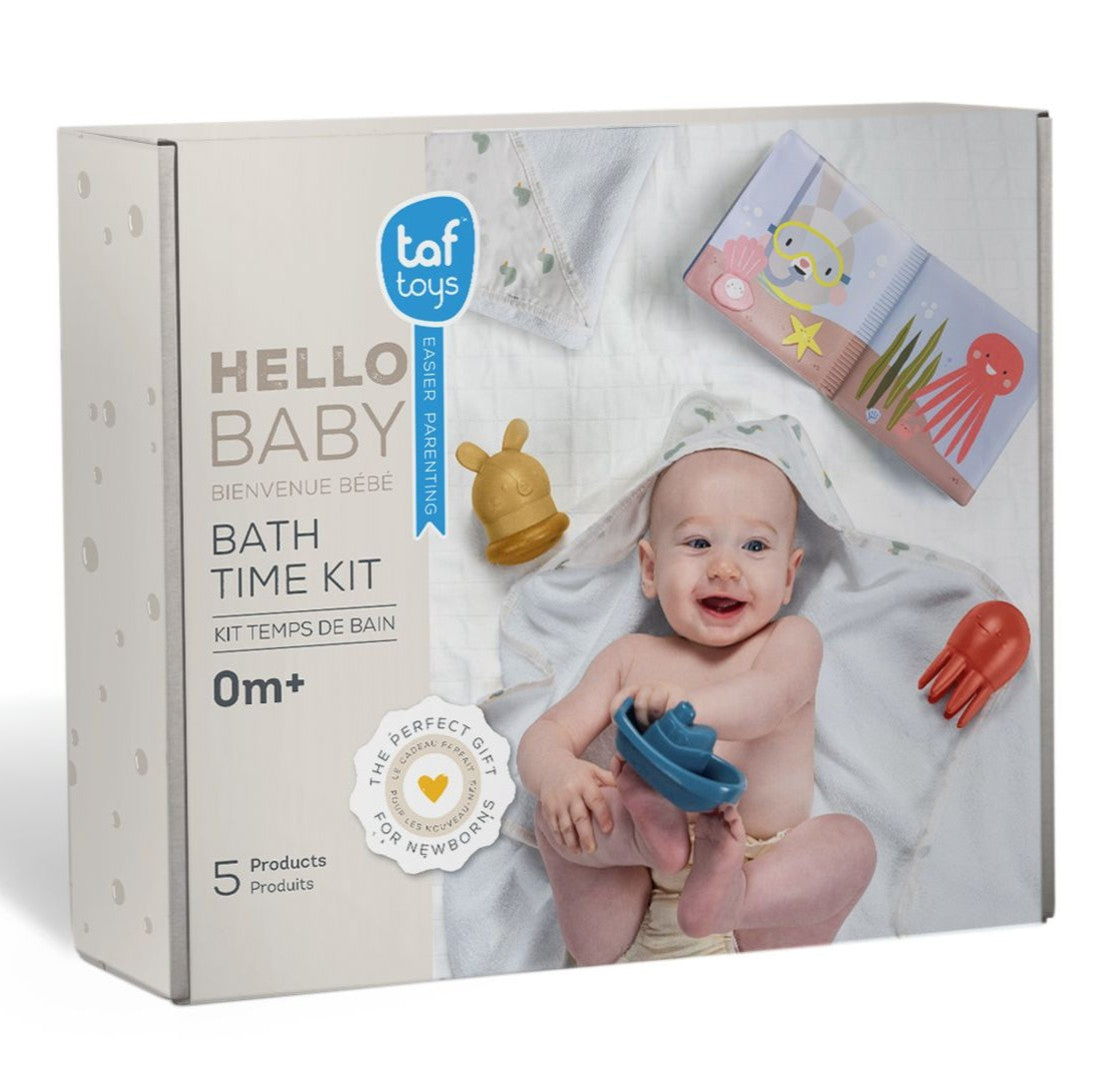 Welcome to the world of splashes and giggles with our Bath Time Kit! Specially designed for your little one's bath time fun, this kit includes everything a baby needs to turn a simple bath into an enchanting aquatic adventure. The set comes with a magical bath book that reveals vibrant colours when dipped in water, a cosy hooded towel to wrap your baby in warmth after the bath, two delightful squeaking bath toys for endless entertainment, and a sensory boat toy that floats merrily on the water's surface. Perfect for newborn essentials and baby boy or girl gifts, this kit is a must-have for any baby wish list.