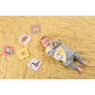 Encourages and nurtures development in visual stimulation, tummy time, learning about cause & effect and transitional objects in emotional development.