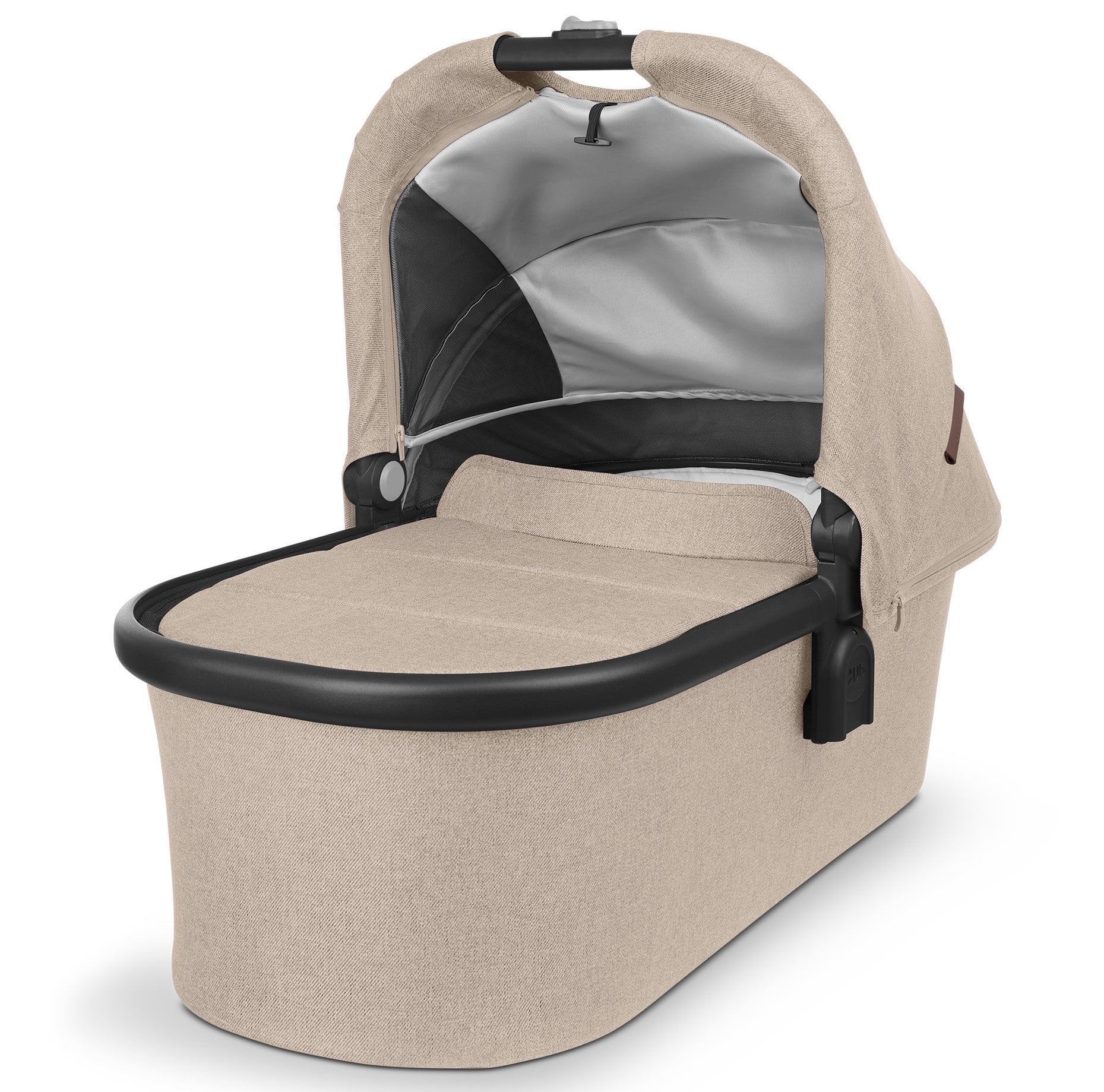 - The bassinet features a ventilated canopy and extendable UPF 50+ sunshade. The back of the Bassinet canopy unzips for additional airflow, and the pop-out sunshade shields your child from harmful UV rays, keeping baby cool and comfortable.
