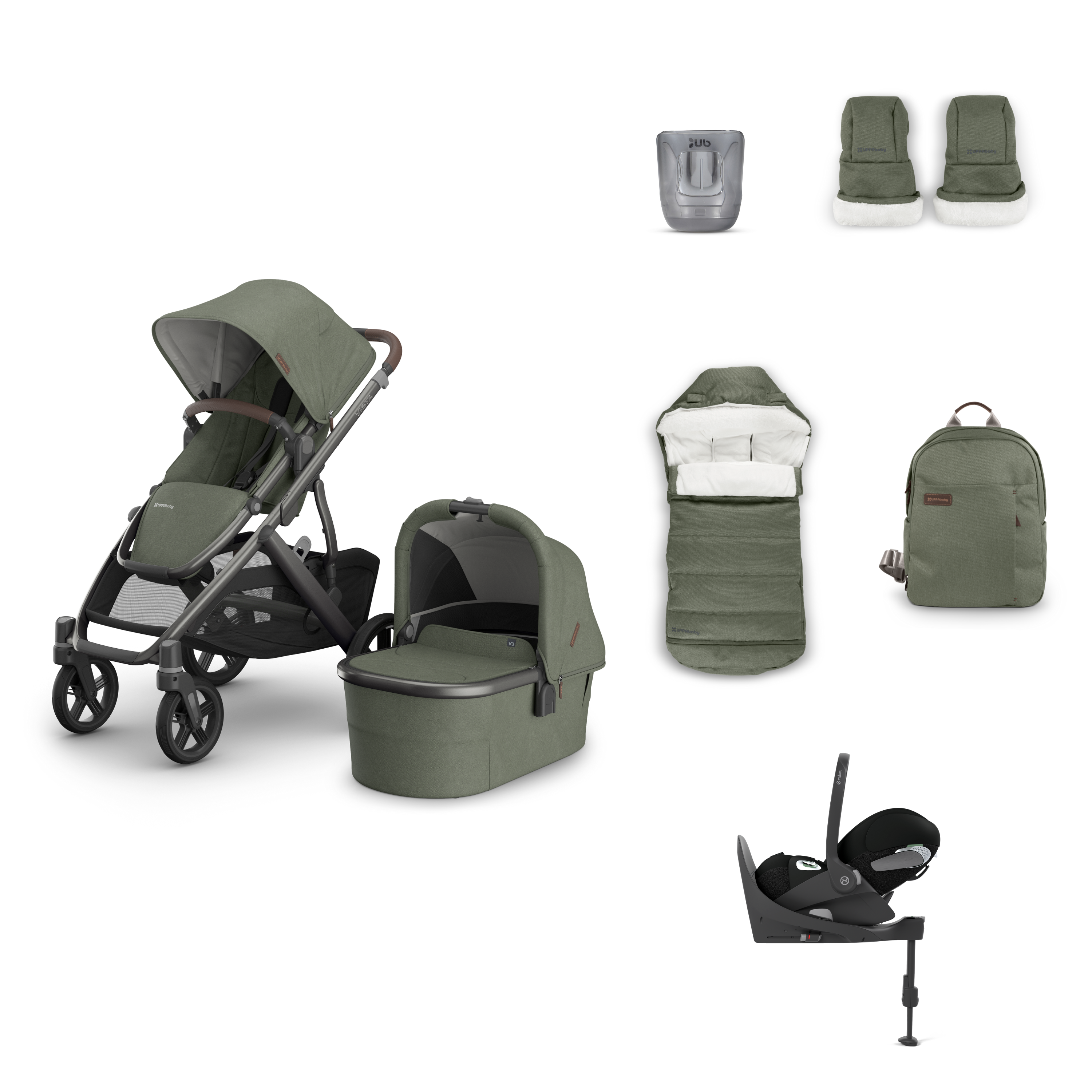Uppababy Vista V3 Pram, Accessory and Travel System Bundle with Cybex Cloud T Plus and Base T - Evelyn