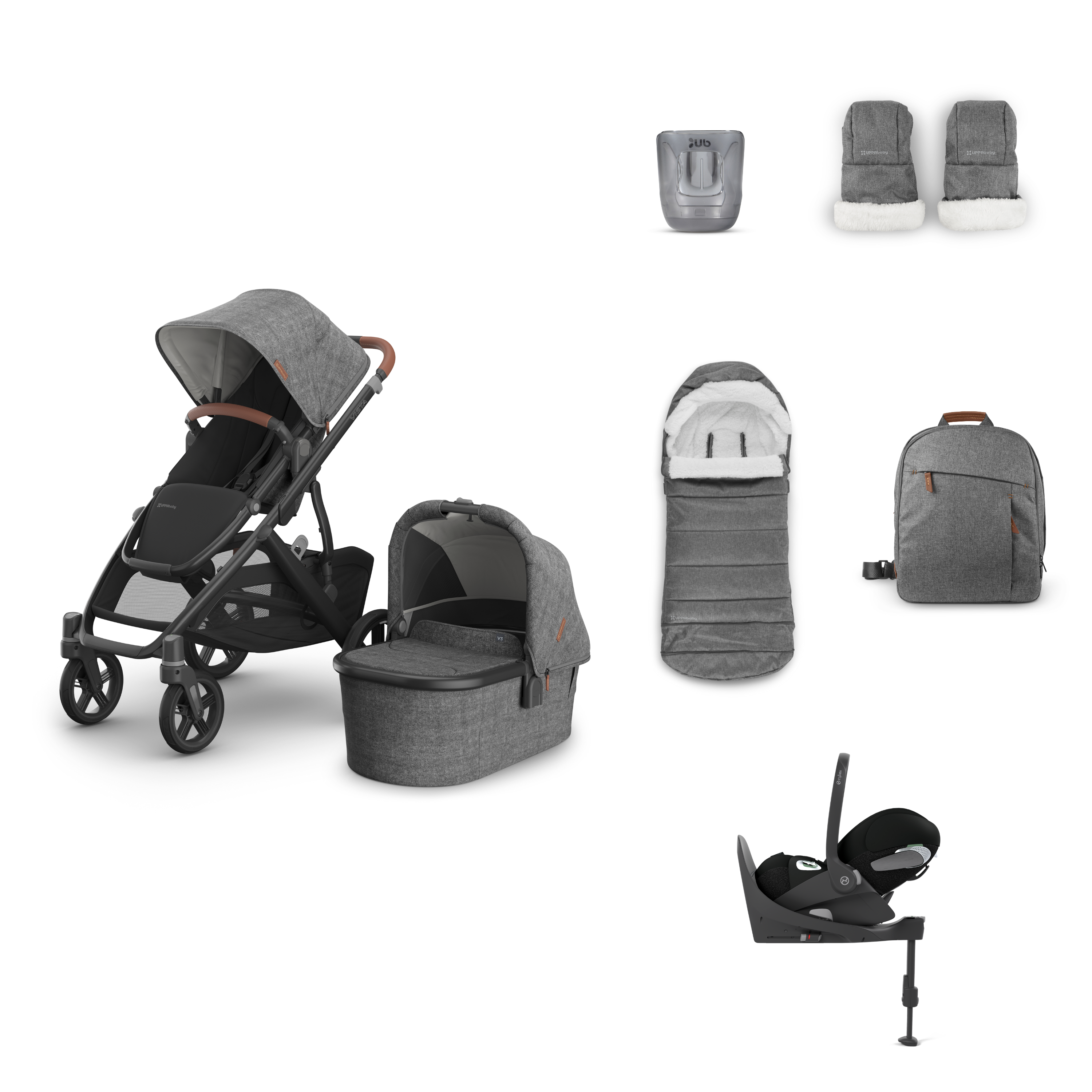 Uppababy Vista V3 Pram, Accessory and Travel System Bundle with Cybex Cloud T Plus and Base T - Greyson