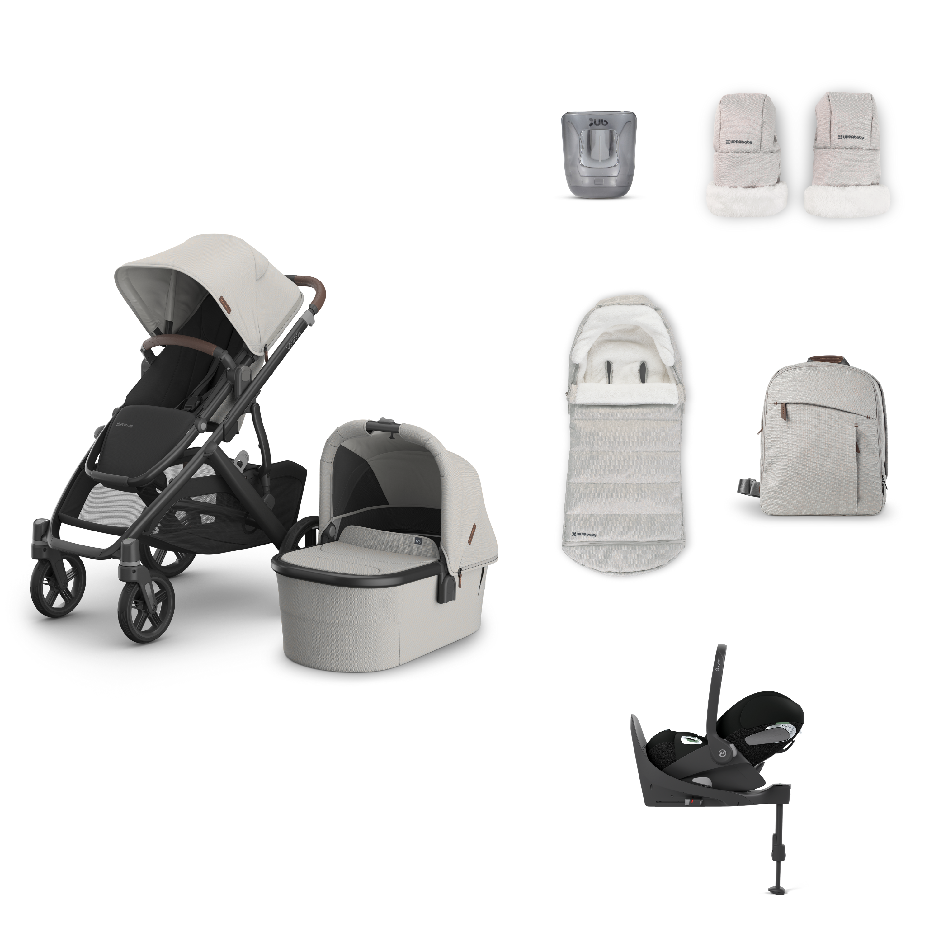 Uppababy Vista V3 Pram, Accessory and Travel System Bundle with Cybex Cloud T Plus and Base T - Savannah