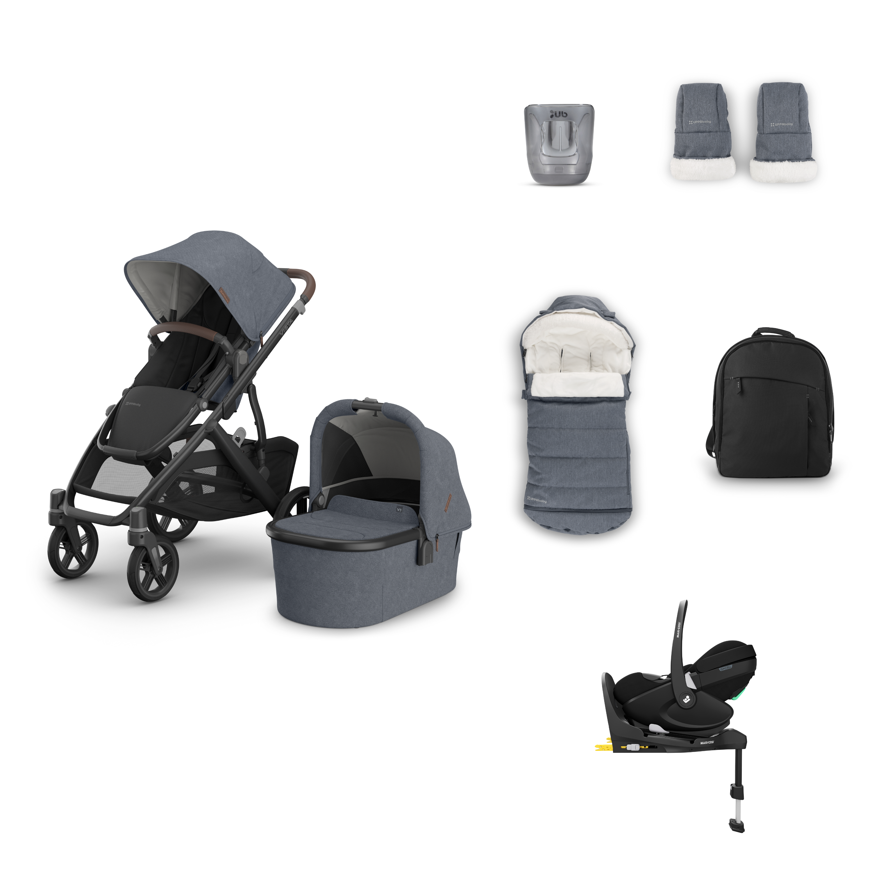 Uppababy Vista V3 Pram, Accessory and Travel System Bundle with Maxi Cosi Pebble 360 Pro V2 and FamilyFix 360 Pro Base - Julian